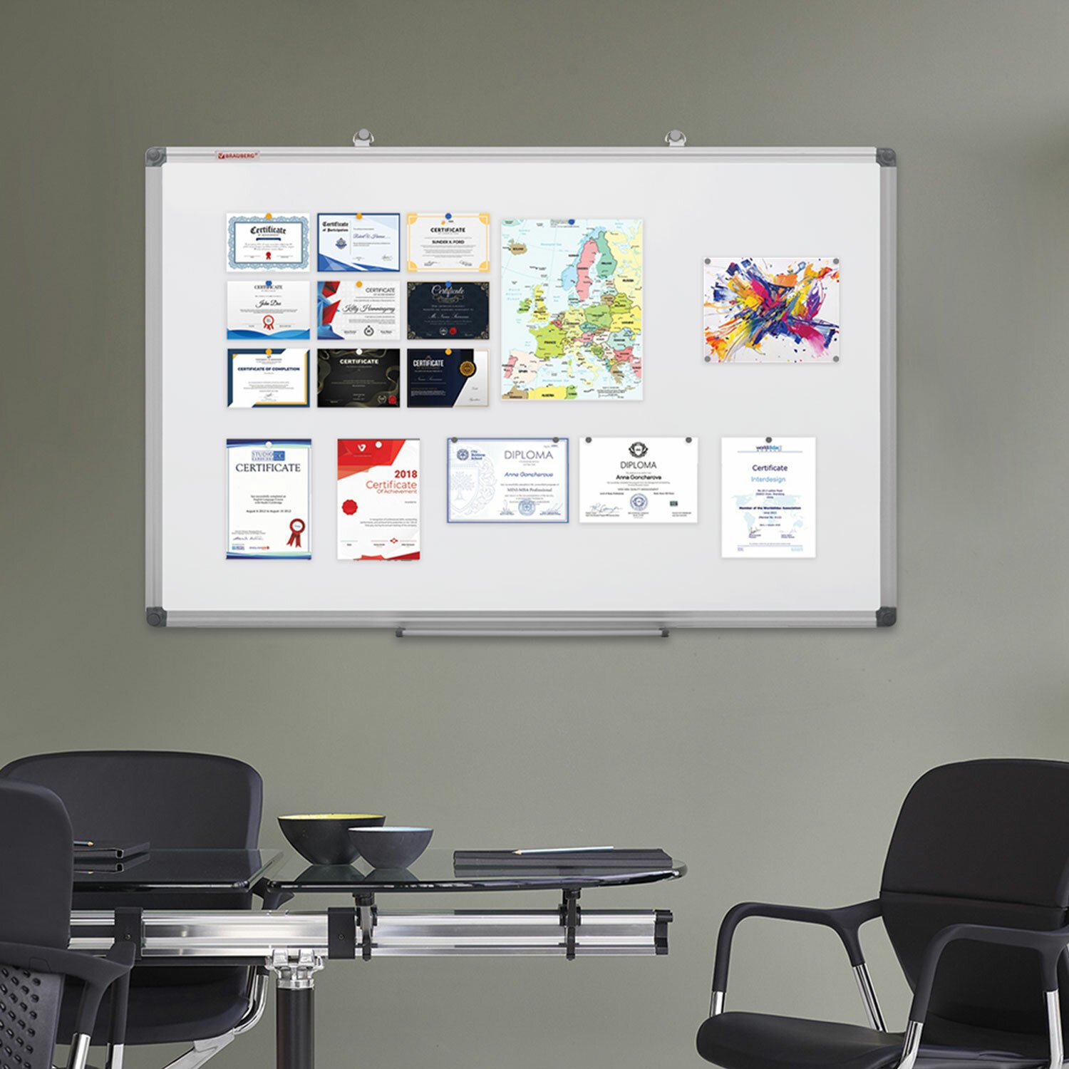 Магнитно-маркерная доска BRAUBERG "Extra" повсеместно применяется в разнообразных образовательных учреждениях, в офисах, залах для обучения, презентаций, ежедневных записей и семинаров.