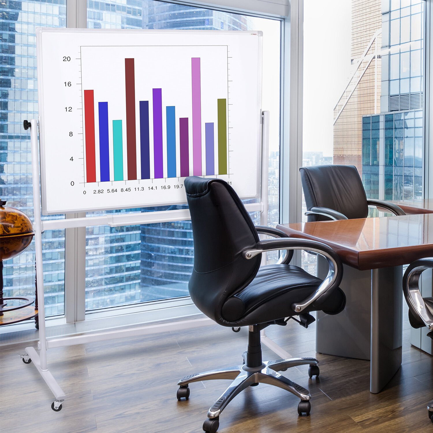 Лаковое покрытие предназначено для письма специальными маркерами для белой доски. Металлическая поверхность позволяет размещать информацию при помощи магнитов. Вращается в горизонтальной плоскости на 360 градусов. Перемещается на колесиках. Элементы крепления и лоток для принадлежностей входят в комплект. Размер доски: 120х180 см. Перед началом работы необходимо удалить защитную пленку с рабочей поверхности доски.