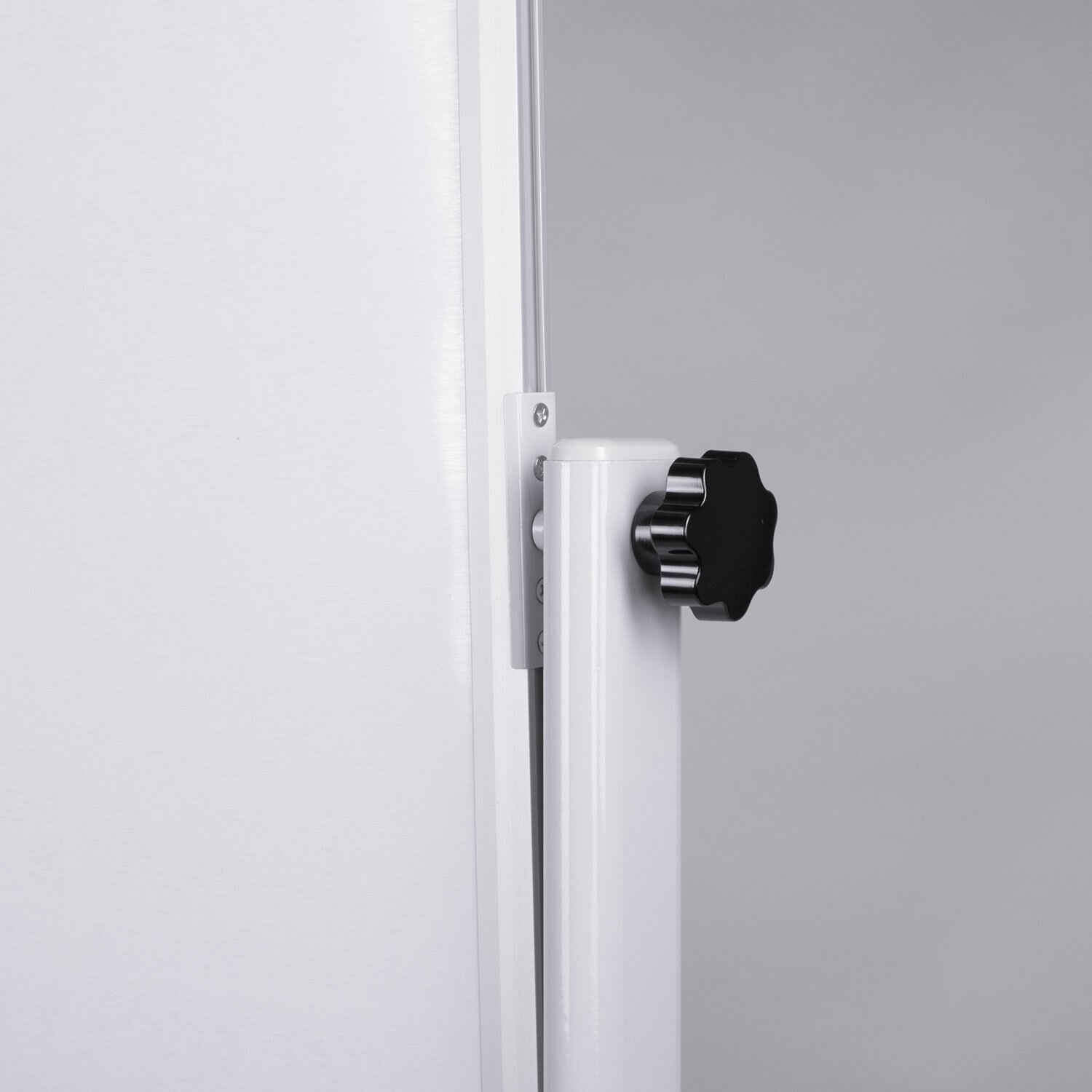 Лаковое покрытие предназначено для письма специальными маркерами для белой доски. Металлическая поверхность позволяет размещать информацию при помощи магнитов. Вращается в горизонтальной плоскости на 360 градусов. Перемещается на колесиках. Элементы крепления и лоток для принадлежностей входят в комплект. Размер доски: 90х60 см. Перед началом работы необходимо удалить защитную пленку с рабочей поверхности доски.