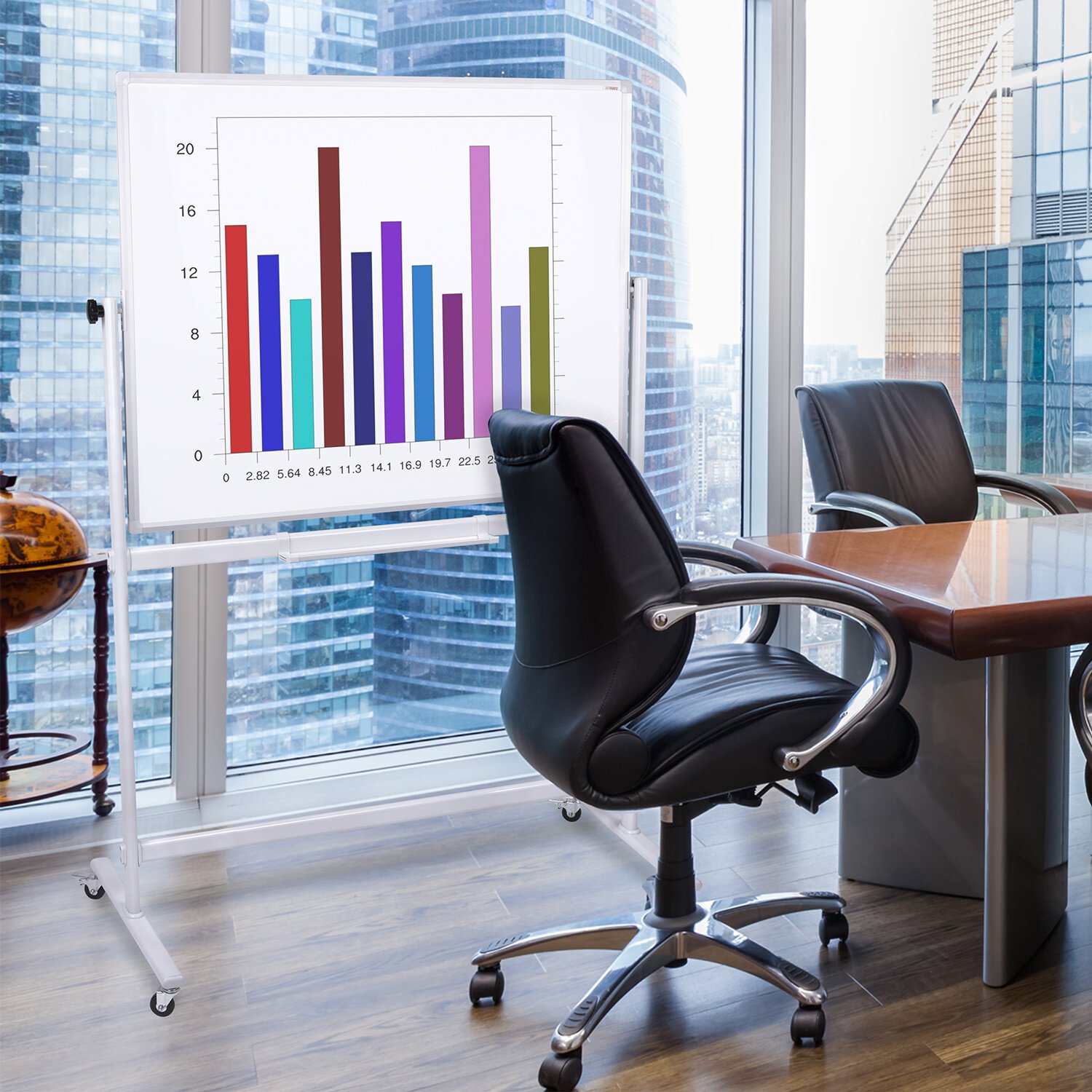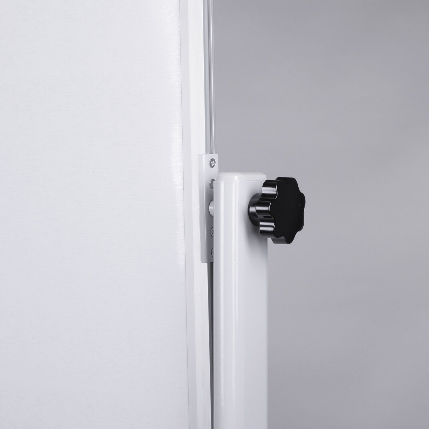 Лаковое покрытие предназначено для письма специальными маркерами для белой доски. Металлическая поверхность позволяет размещать информацию при помощи магнитов. Вращается в горизонтальной плоскости на 360 градусов. Перемещается на колесиках. Элементы крепления и лоток для принадлежностей входят в комплект. Размер доски: 90х120 см. Перед началом работы необходимо удалить защитную пленку с рабочей поверхности доски.