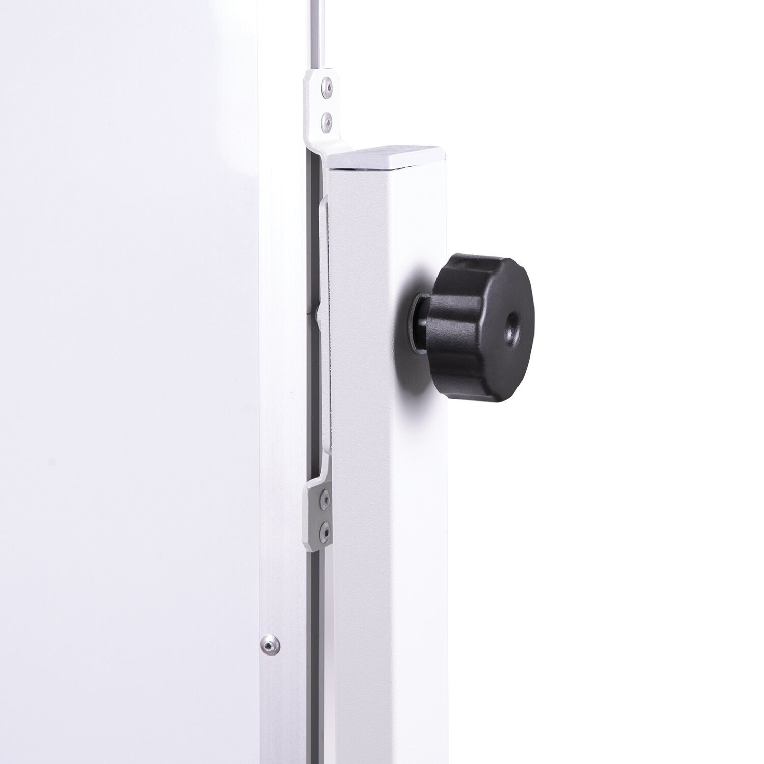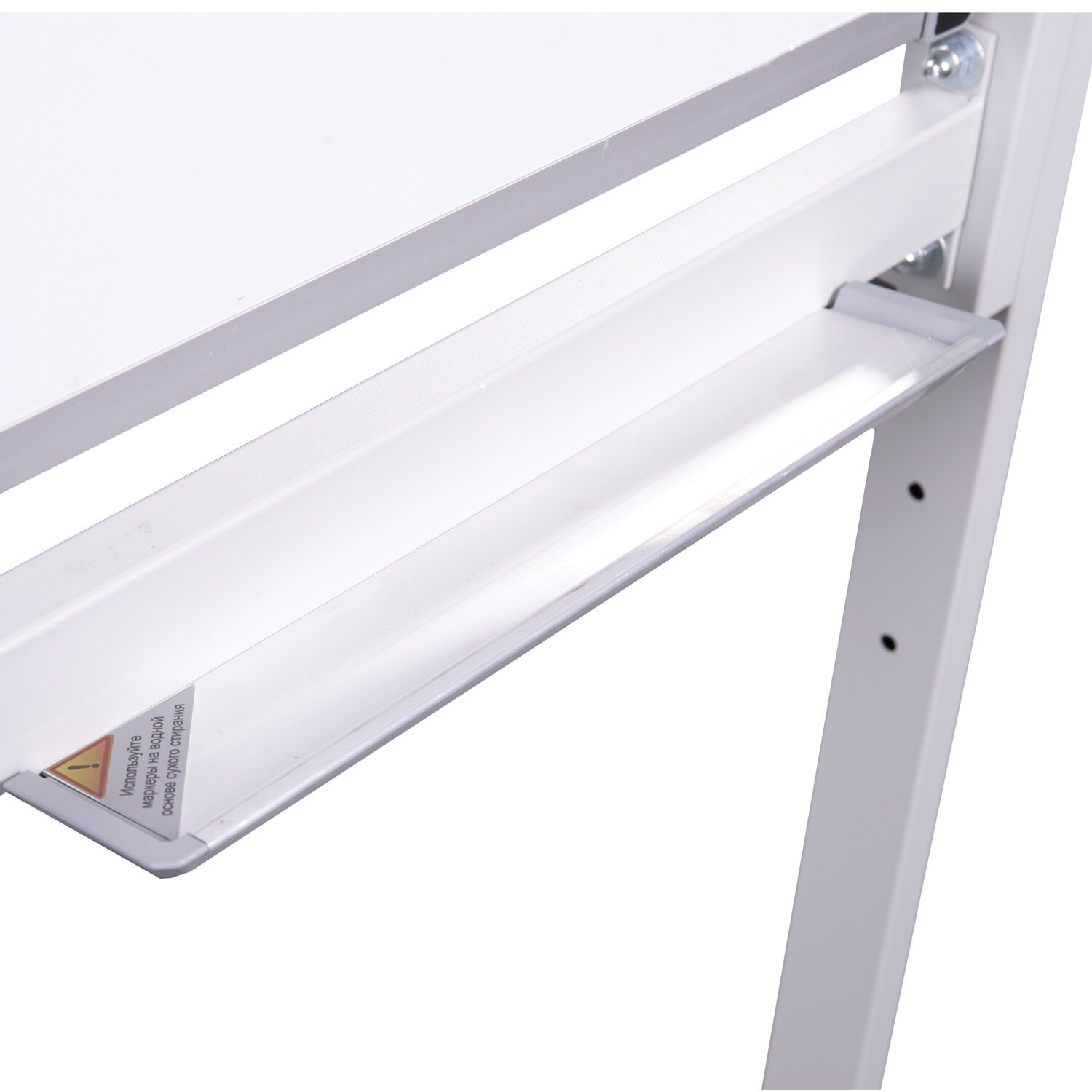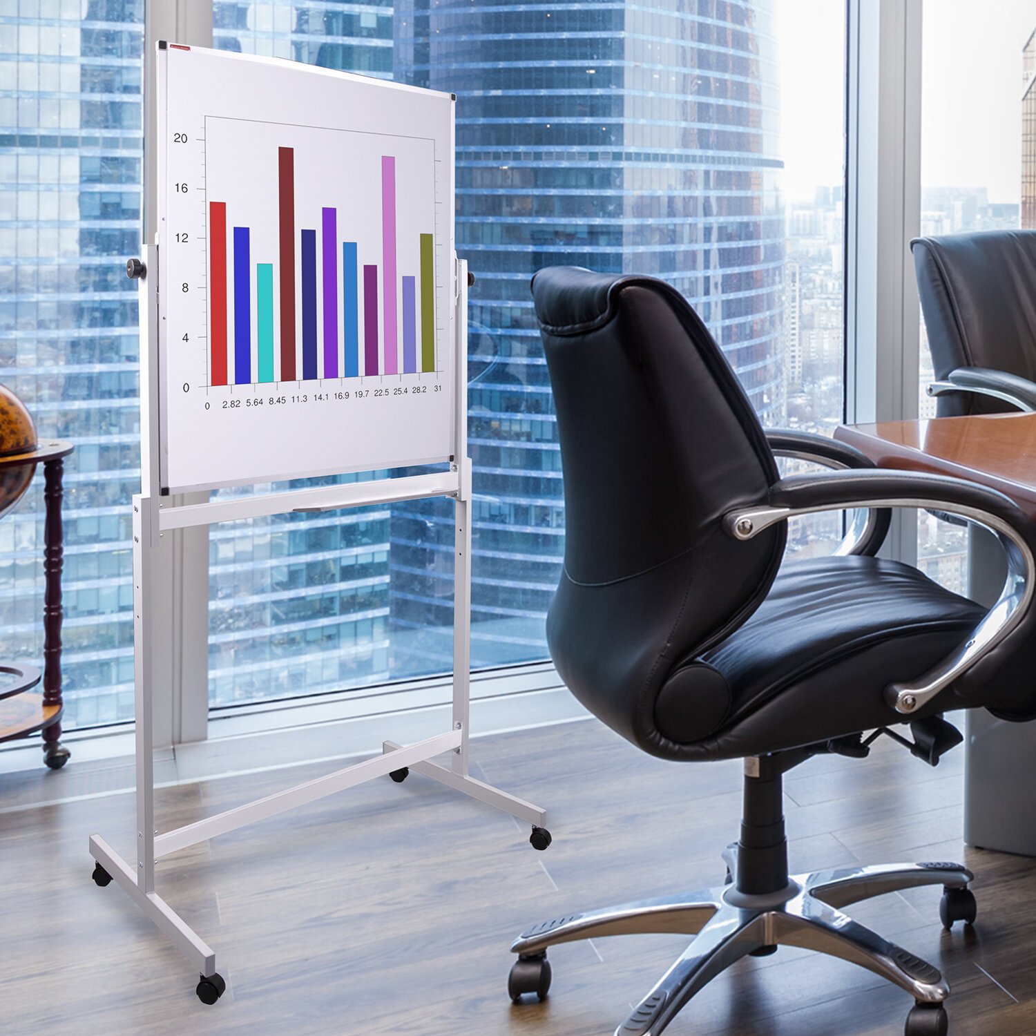 Лаковое покрытие предназначено для письма специальными маркерами для белой доски, а металлическая поверхность позволяет размещать информацию при помощи магнитов. Вращается в горизонтальной плоскости на 360°. Перемещается на колесиках. Алюминиевая рама придает доске необходимую прочность. Подставка для канцелярских принадлежностей позволяет всегда держать под рукой магниты, маркеры, стиратели и другие необходимые предметы. Элементы крепления входят в комплект. Защитная пленка предупреждает появление царапин, потертостей и сколов на рабочей поверхности доски при транспортировке и хранении продукции (перед началом работы необходимо удалить защитную плёнку). Размер: 90х60 см.