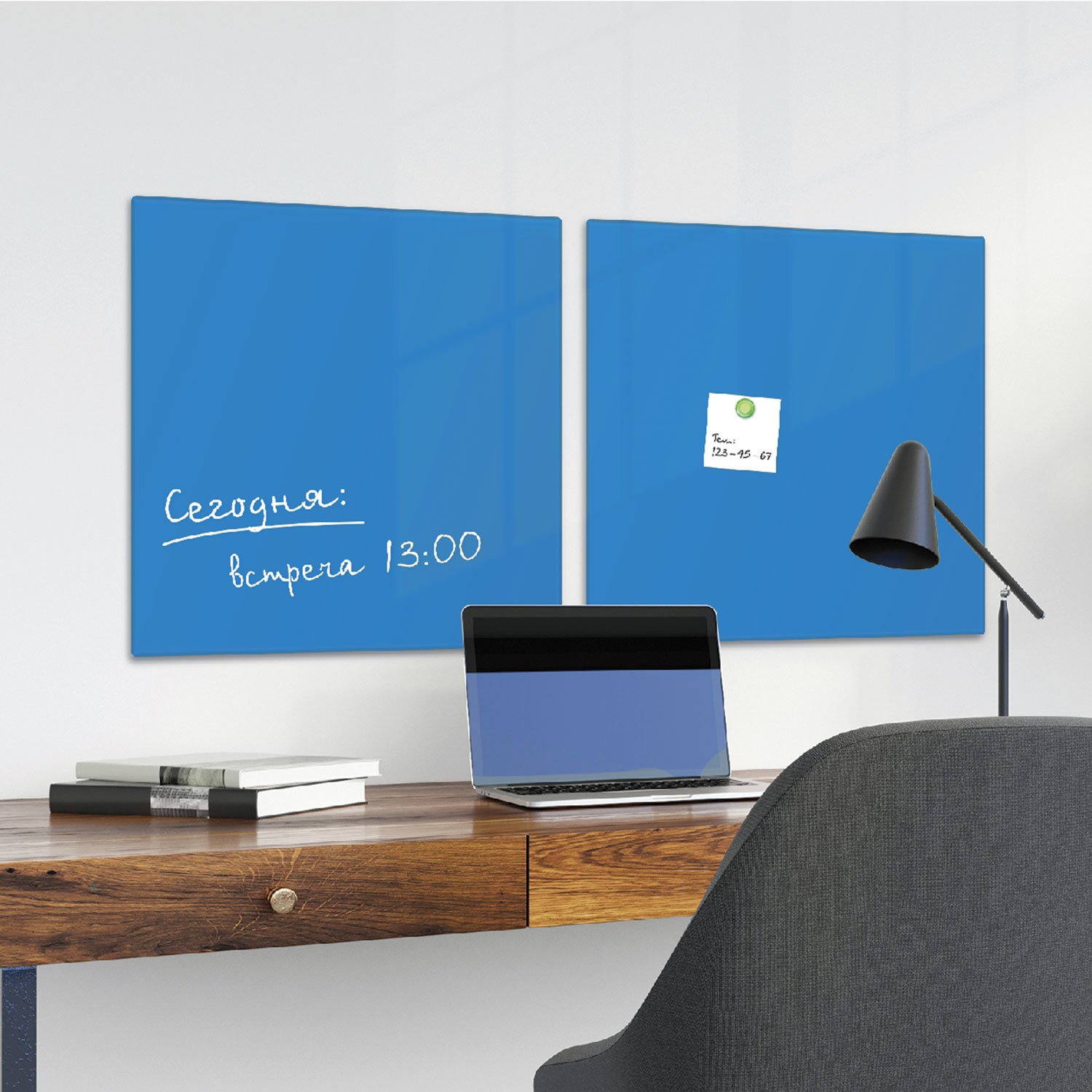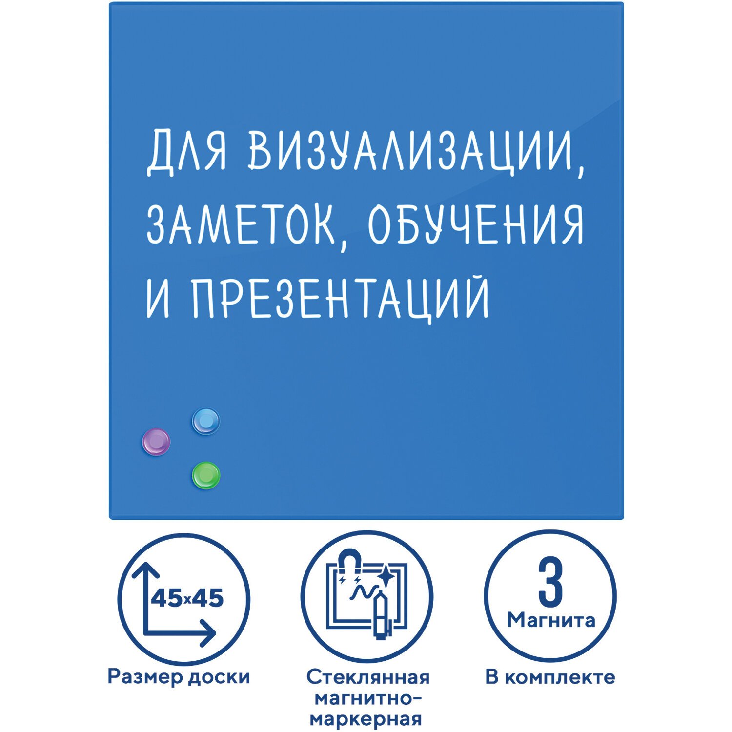 Доска магнитно-маркерная стеклянная 45х45 см, 3 магнита, СИНЯЯ, BRAUBERG, 236741