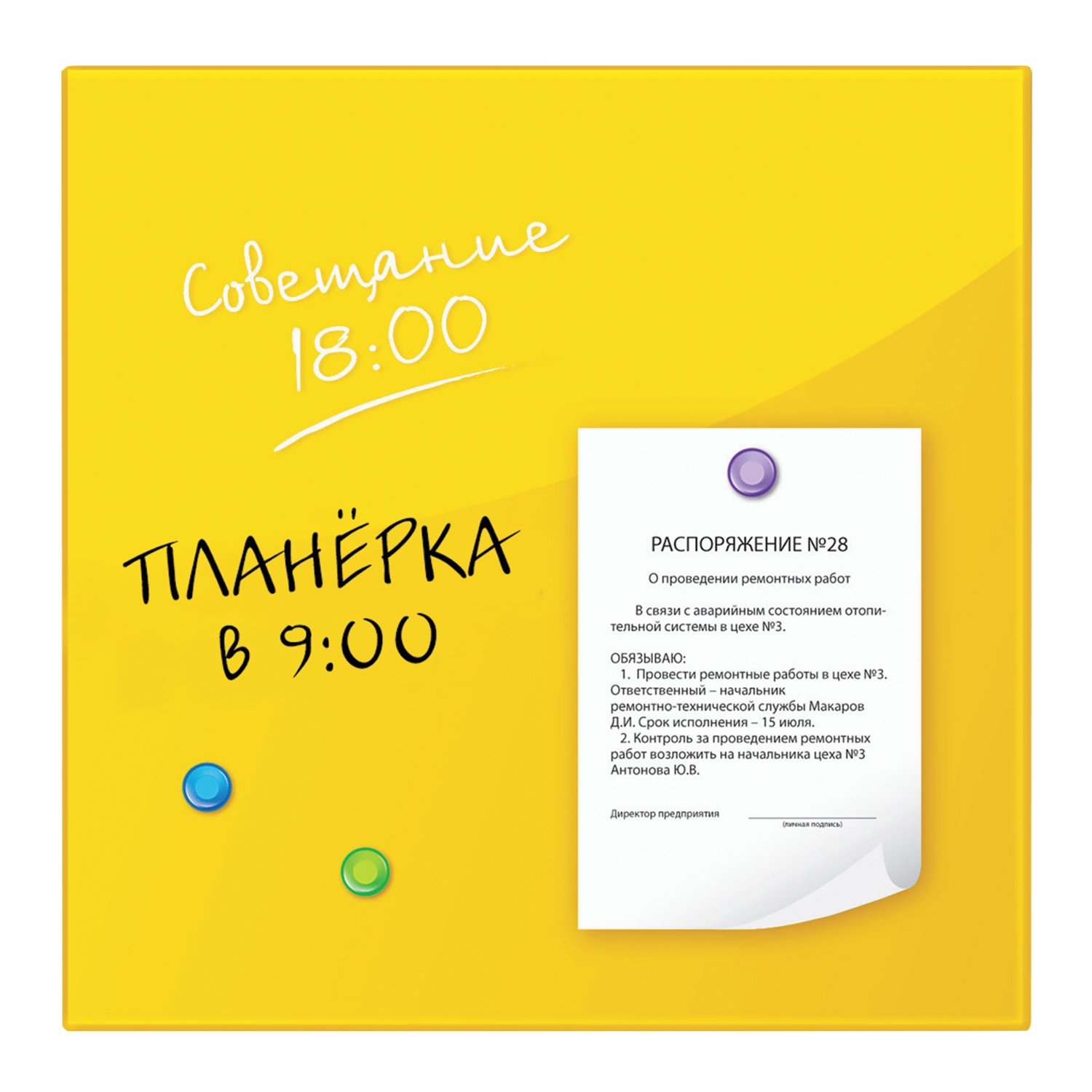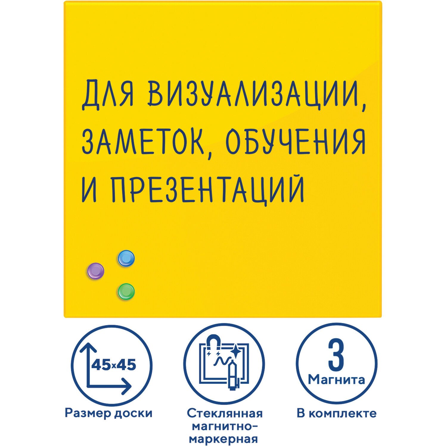 Доска магнитно-маркерная стеклянная 45х45 см, 3 магнита, ЖЕЛТАЯ, BRAUBERG, 236739