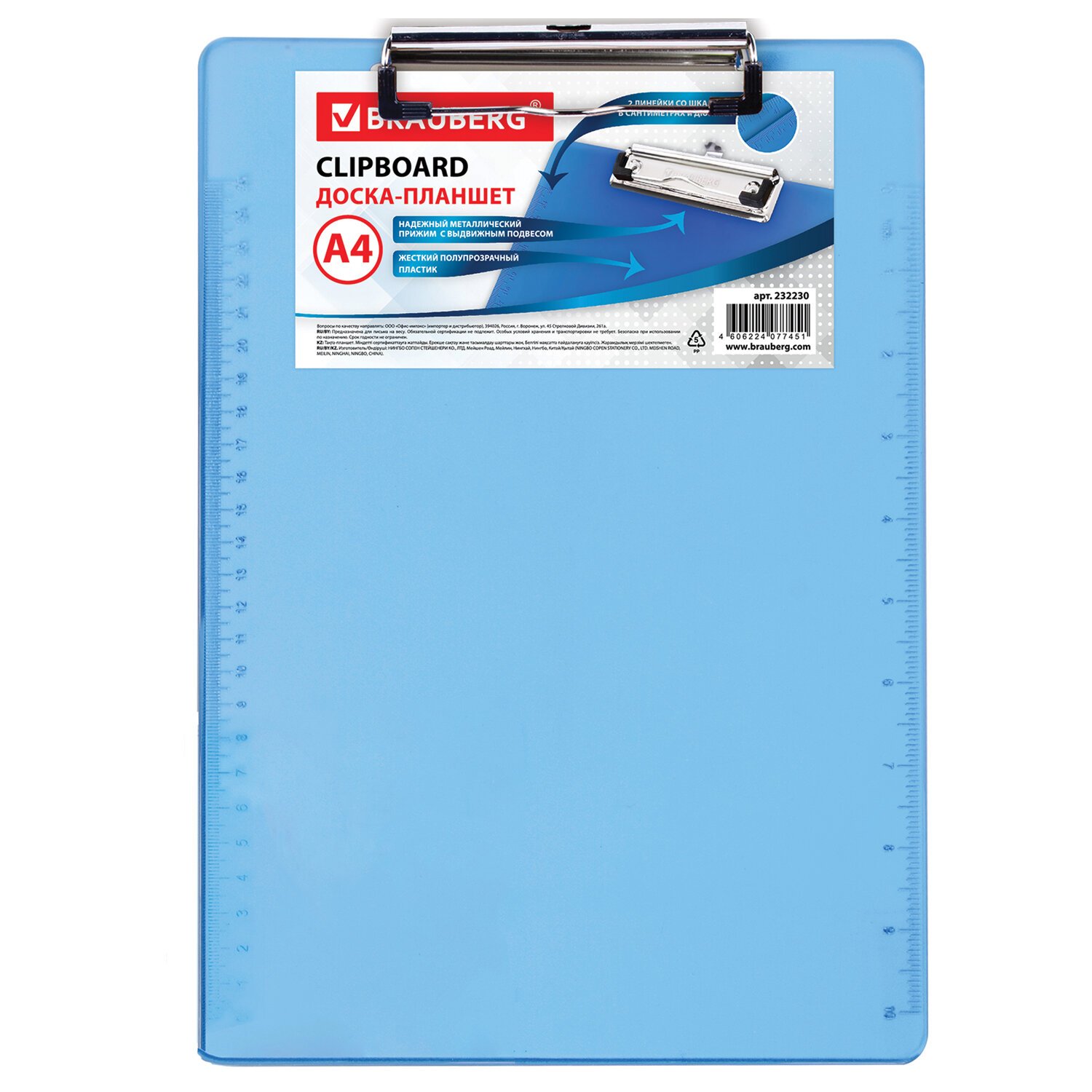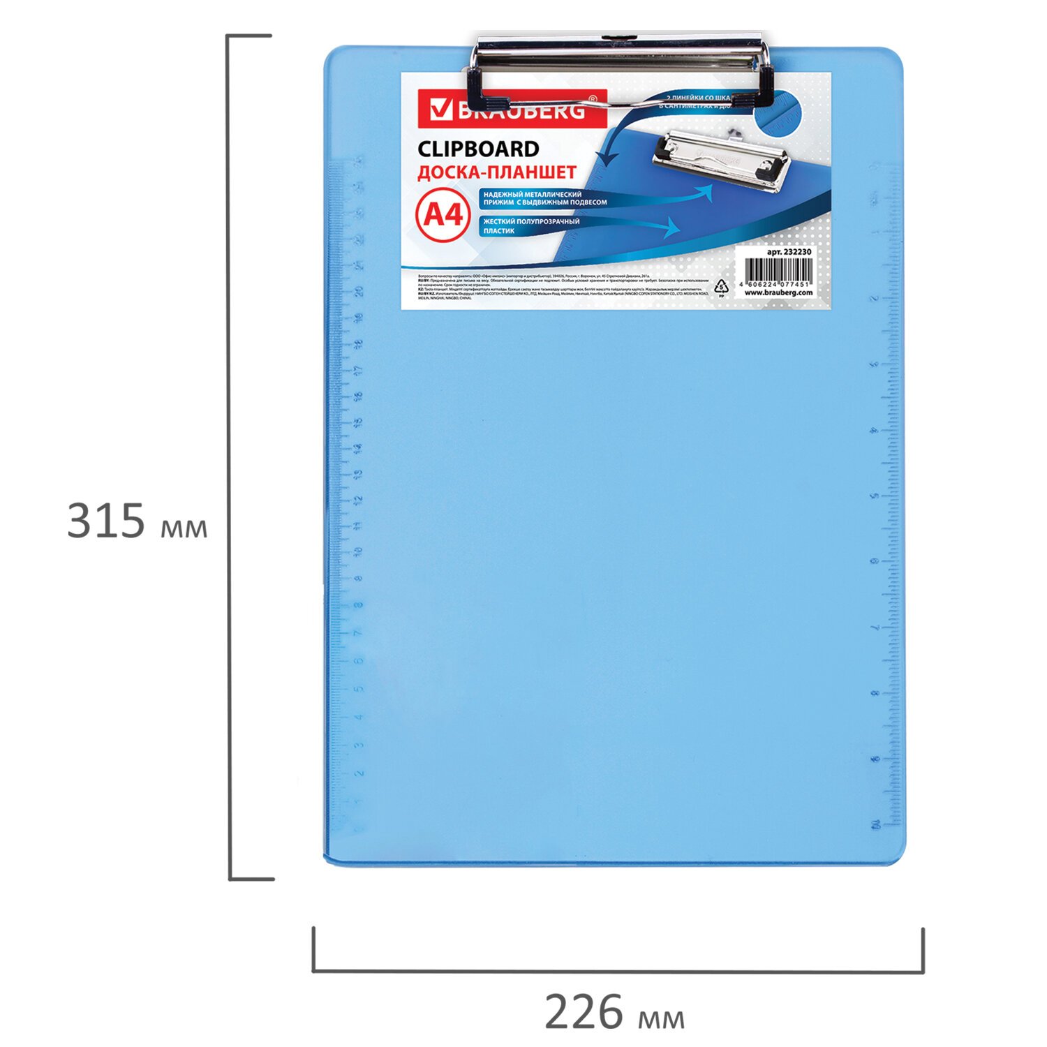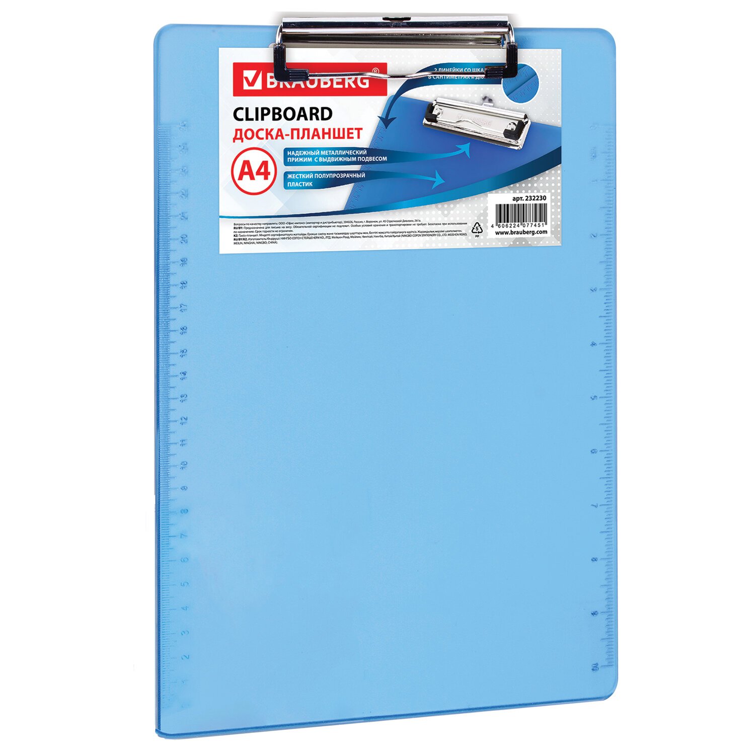 Доска-планшет BRAUBERG "Energy" с прижимом А4 (226х315 мм), пластик, 2 мм, СИНЯЯ, 232230
