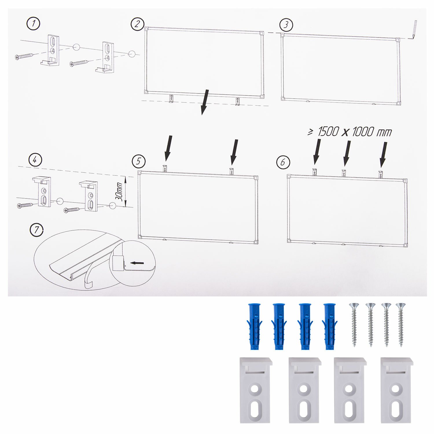 Поверхность изготовлена из натуральной пробки. Рамка доски выполнена из ПВХ белого цвета. Имеет укрепленные пластиковые уголки. Размер доски - 70х50 см. Цвет покрытия: коричневый. Возможность горизонтального и вертикального размещения доски. Крепится к стене, элементы крепления входят в комплект. Гарантия 10 лет. Отверстия в пробке "закрываются" сразу же после извлечения кнопки. Таким образом, доска прослужит на протяжении долгих лет, несмотря на частое использование.
