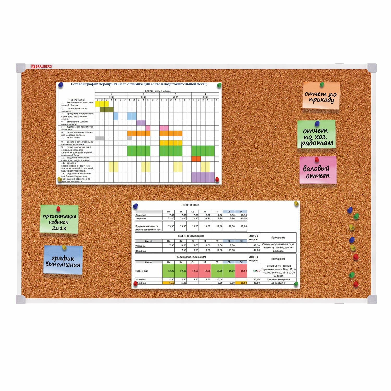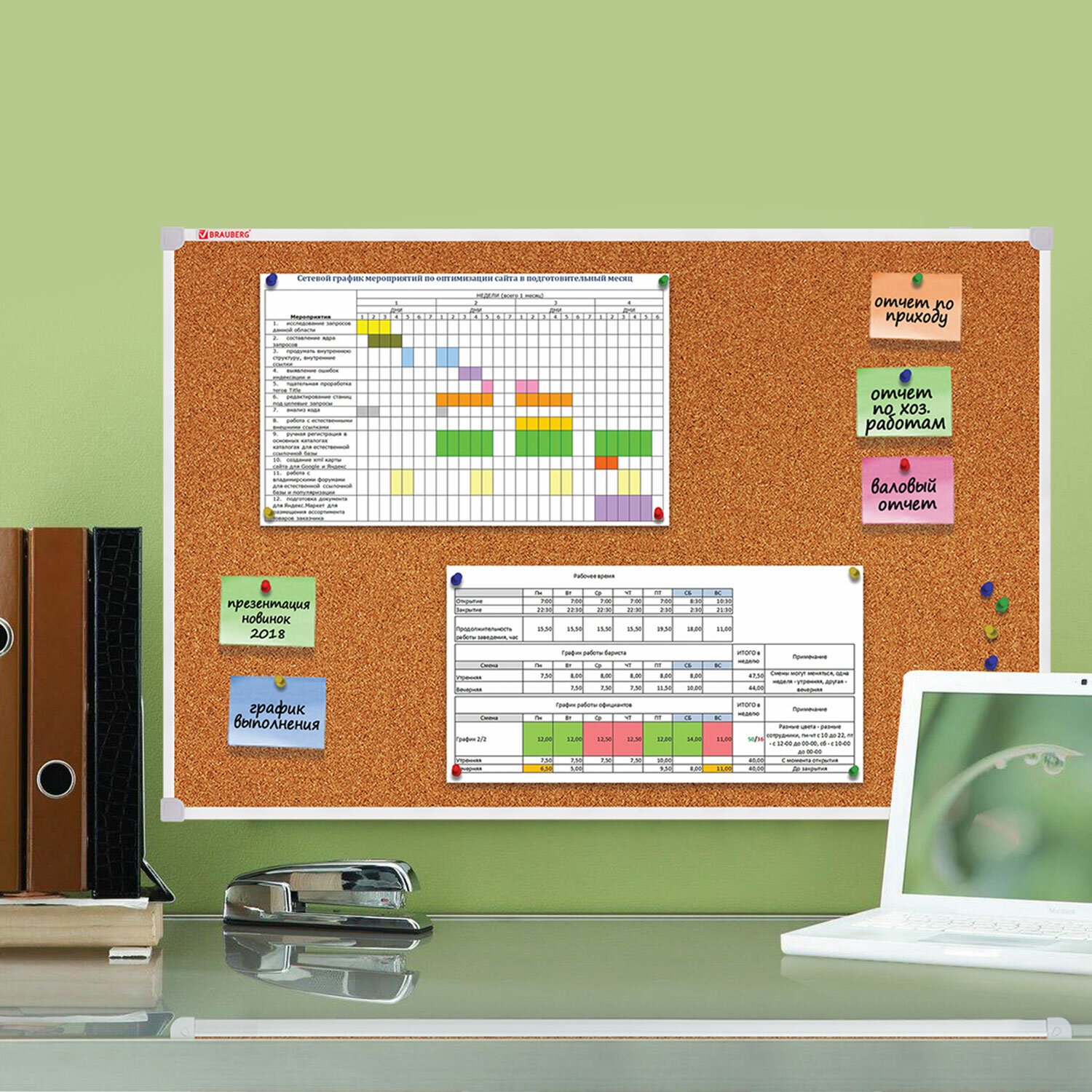 Доска пробковая для объявлений 45х60 см, алюминиевая рамка, ГАРАНТИЯ 10 ЛЕТ, РОССИЯ, BRAUBERG, 231711