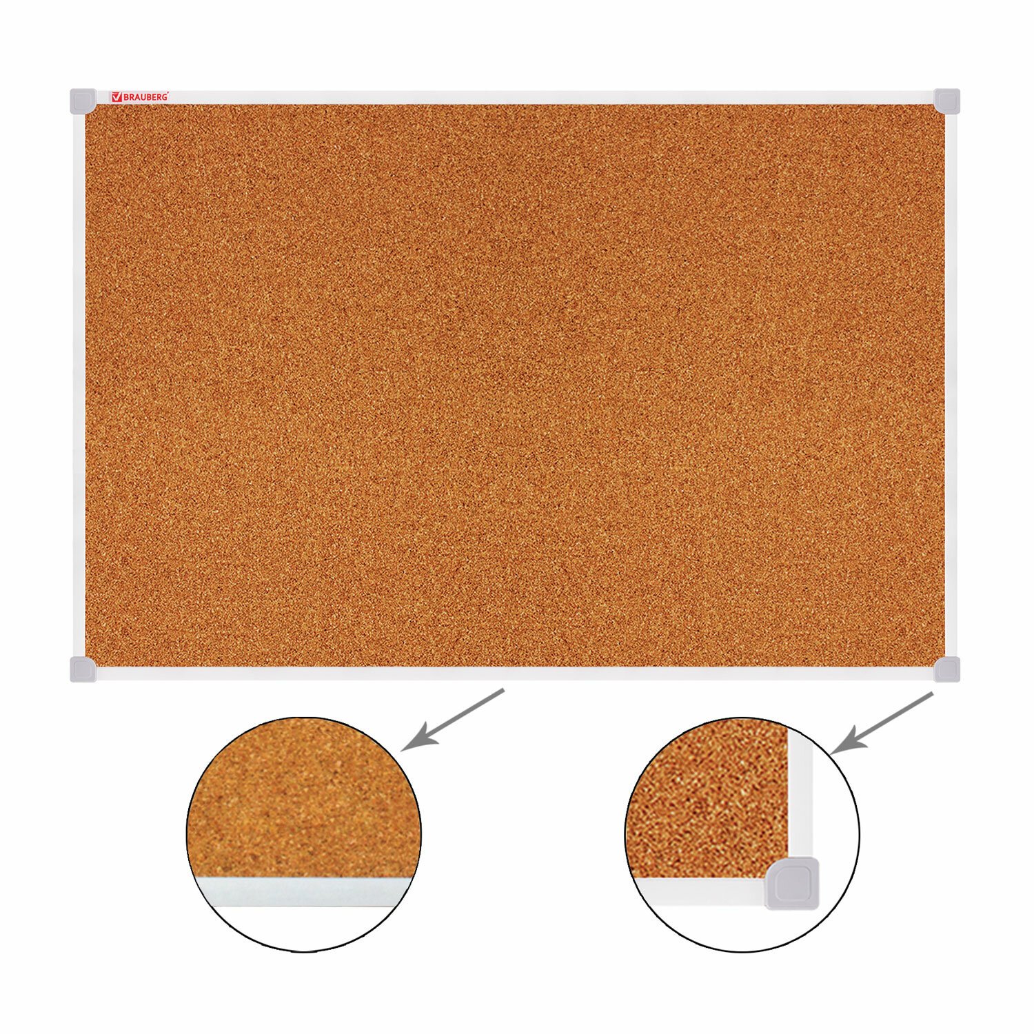 Доска пробковая для объявлений 60х90 см, алюминиевая рамка, BRAUBERG Extra, 238308