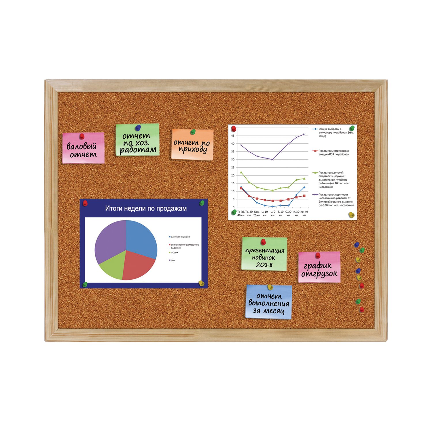 Доска пробковая 70х50 см, ПВХ-рамка, ГАРАНТИЯ 10 ЛЕТ, РОССИЯ, BRAUBERG, 238188