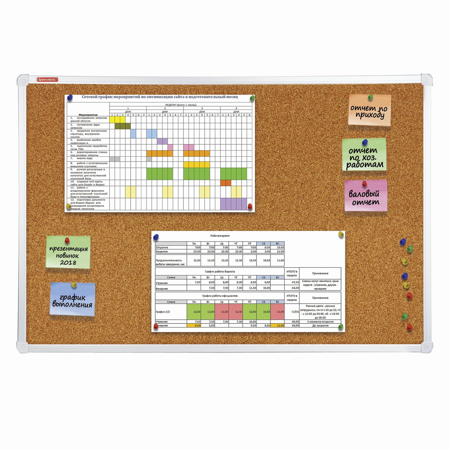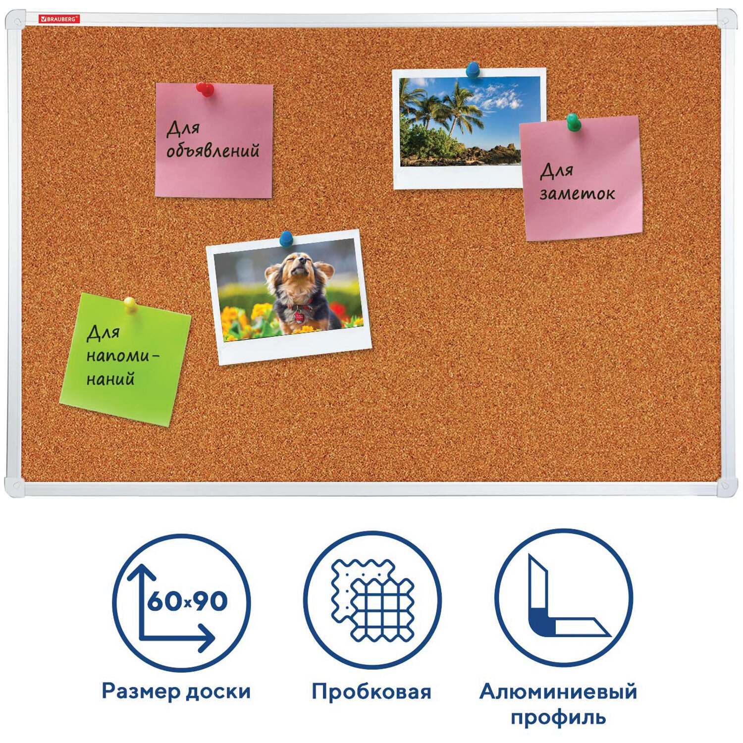 Доска пробковая для объявлений 60х90 см, алюминиевая рамка, ГАРАНТИЯ 10 ЛЕТ, РОССИЯ, BRAUBERG, 231712
