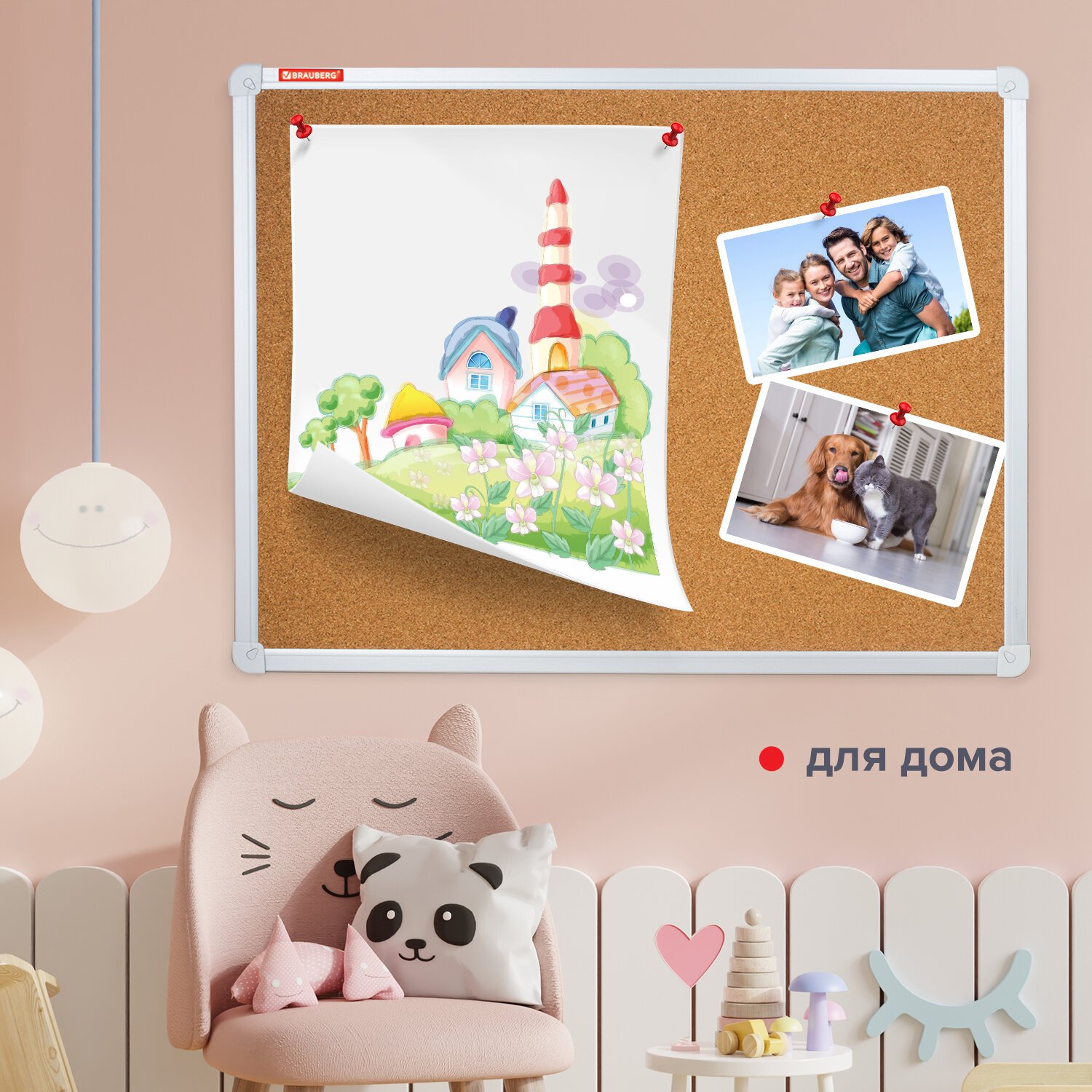 Доска пробковая 70х50 см, алюминиевая рамка, ГАРАНТИЯ 10 ЛЕТ, РОССИЯ, BRAUBERG, 238187