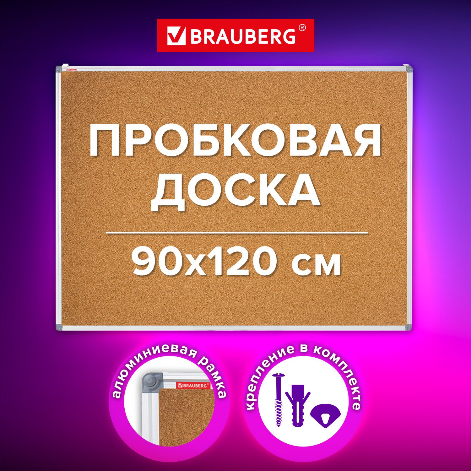 Доска пробковая для объявлений 90х120 см, алюминиевая рамка, BRAUBERG Extra, 238309