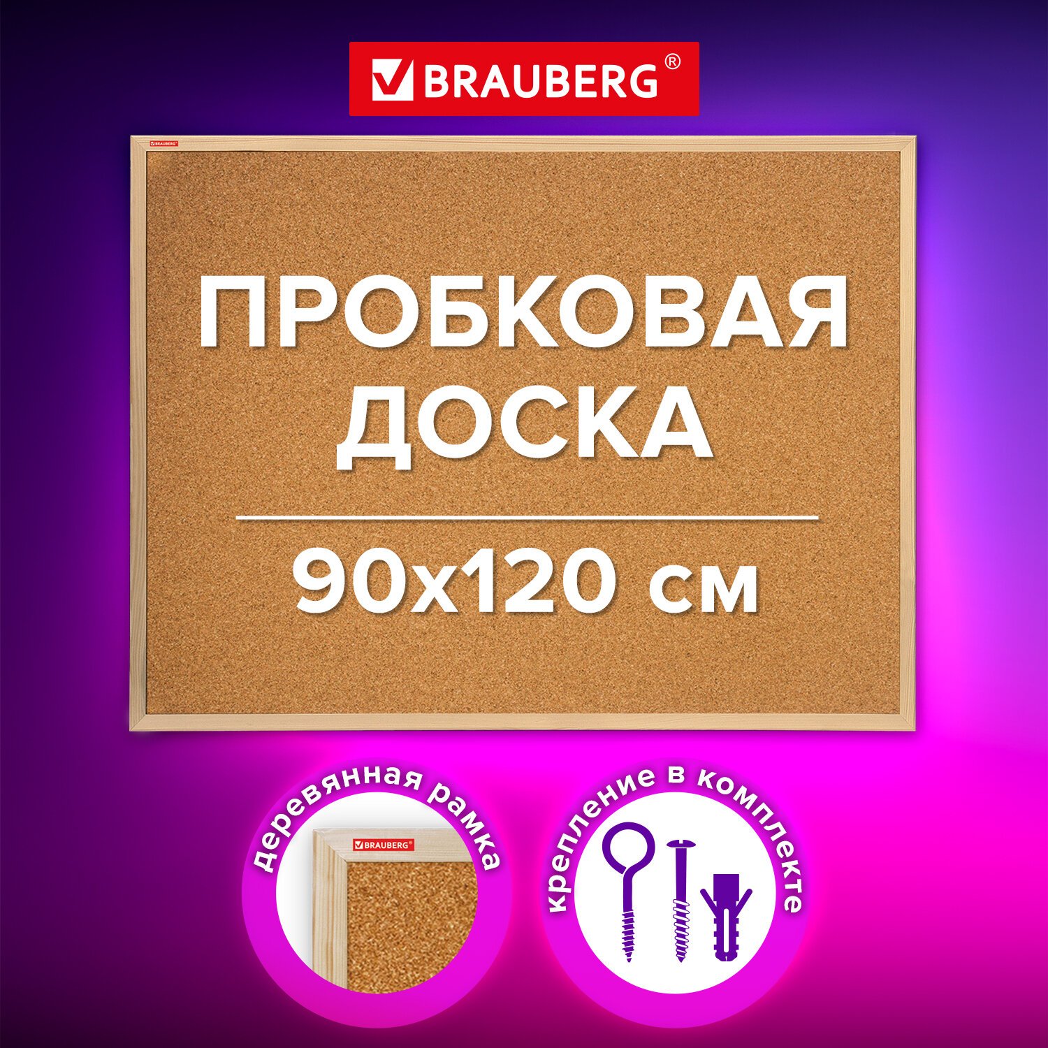 Доска пробковая для объявлений 90х120 см, деревянная рамка, BRAUBERG Wood, 238312