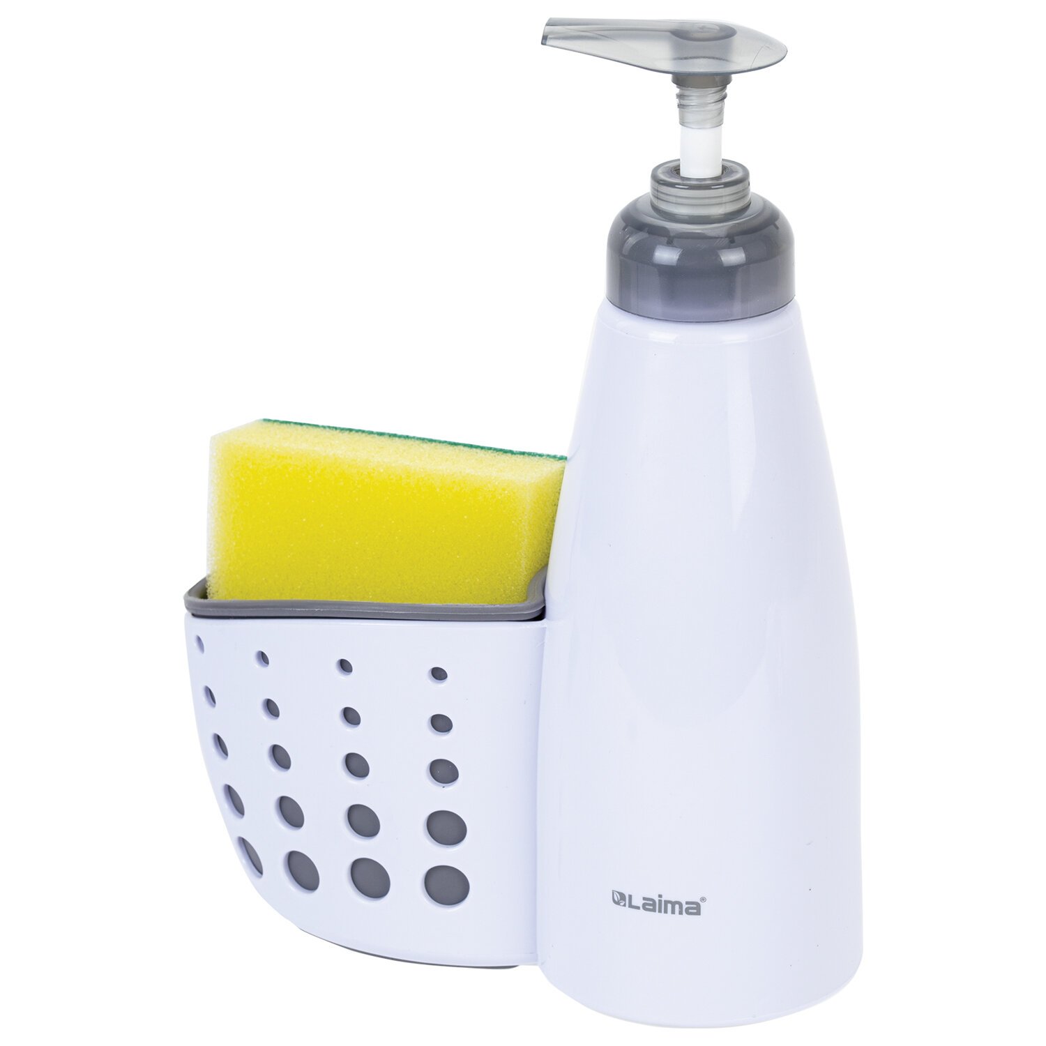 Дозатор для моющего средства, органайзер кухонный + губка, БЕЛЫЙ, 8х20х16см, LAIMA HOME, 700048