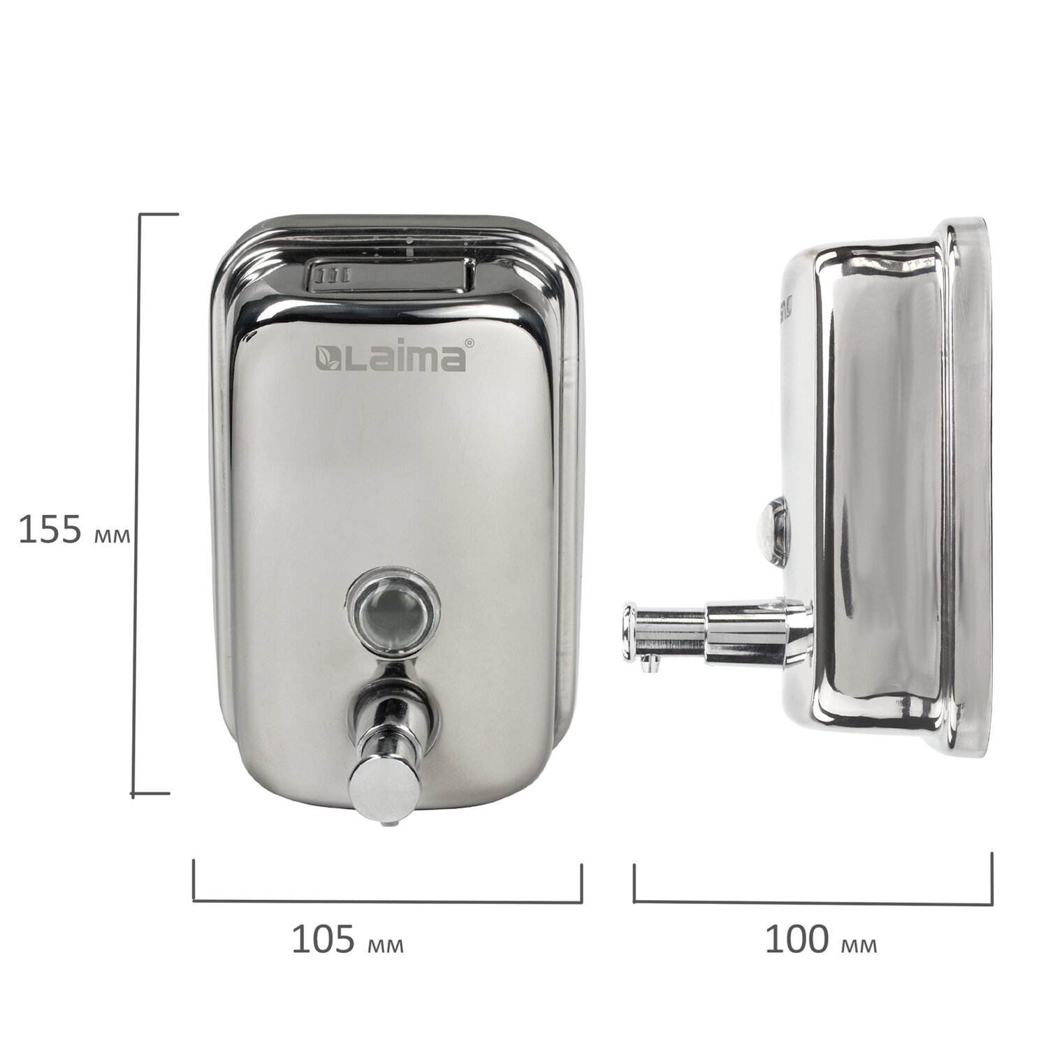 Дозатор для жидкого мыла LAIMA PROFESSIONAL INOX (гарантия 3 года), 0,5 л, нержавеющая сталь, зеркальный, 605394
