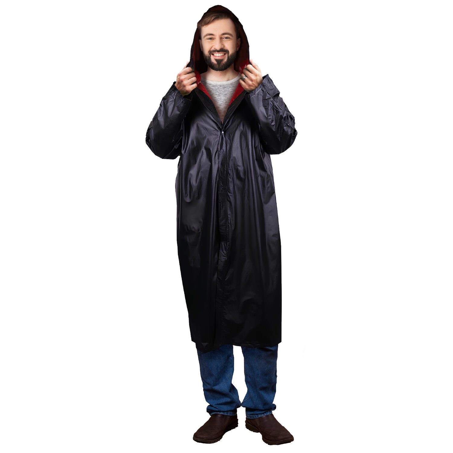 Дождевик-плащ черный на кнопках виниловый сверхпрочный, размер 50-56, рост 170-185, ГРАНДМАСТЕР, 610938