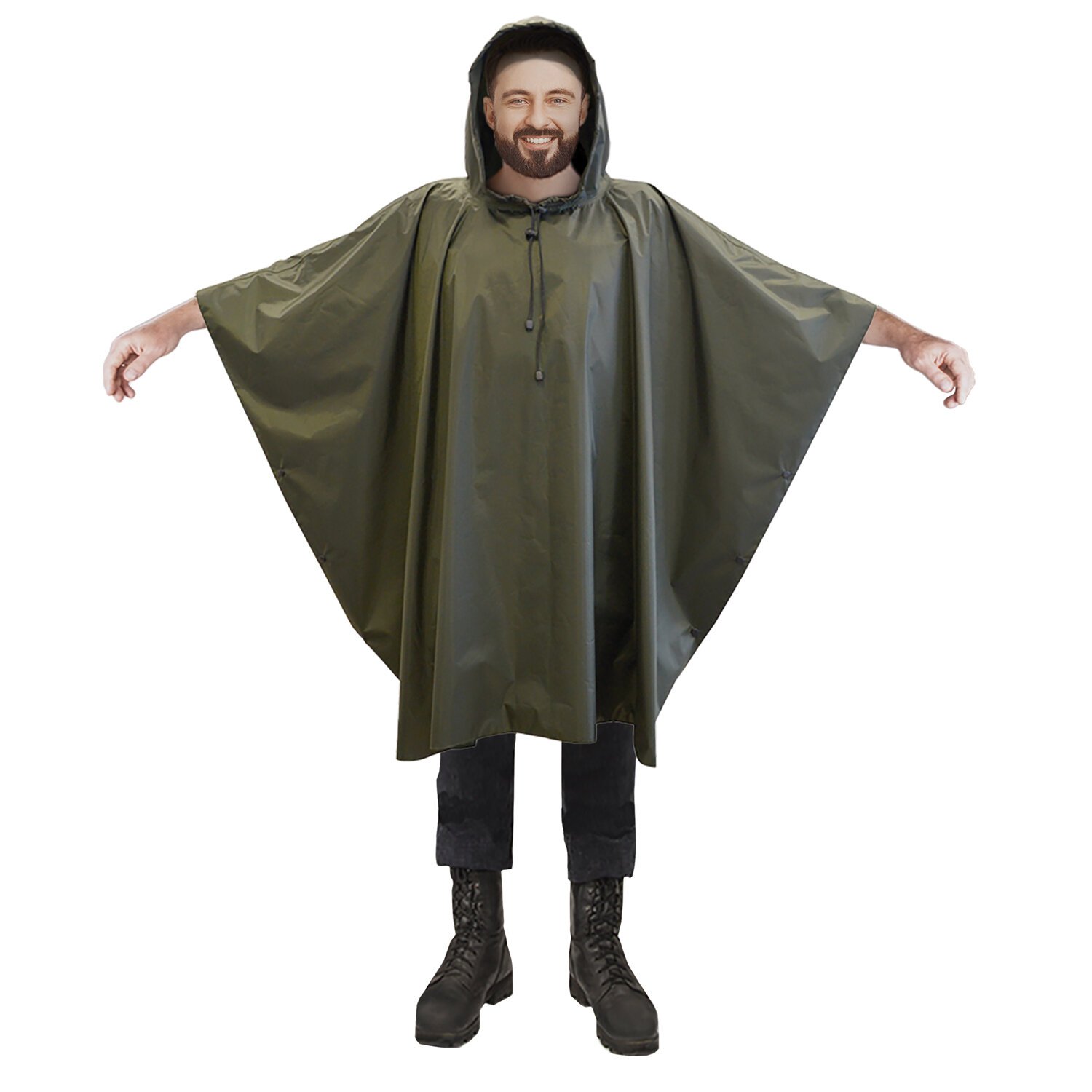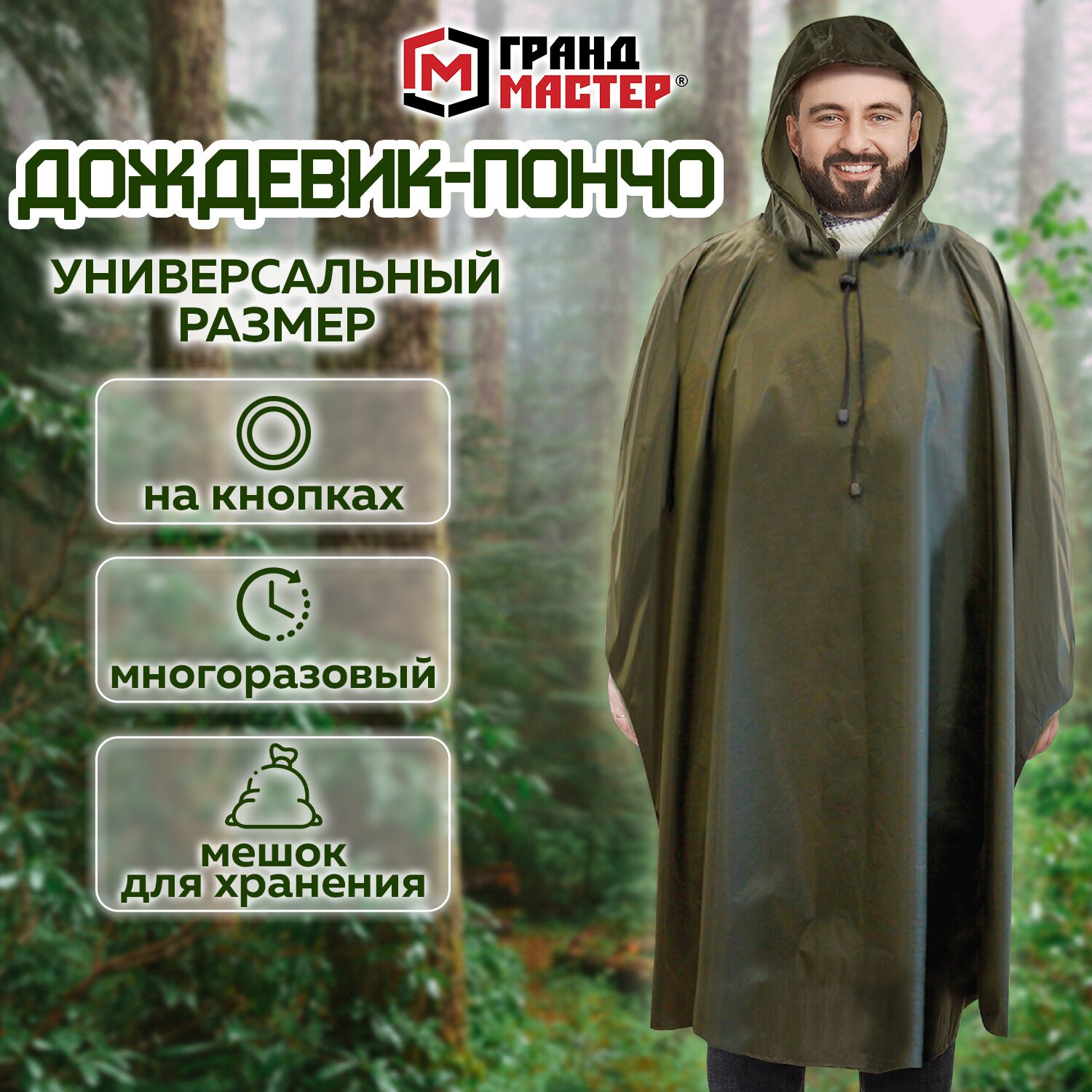 Многоразовый дождевик пончо цвета хаки на кнопках с ПВХ-покрытием ГРАНДМАСТЕР предназначен для защиты от ветра, дождя и других атмосферных воздействий. Идеально подойдет для работы на улице, отдыха на природе, рыбалки, пикника и прогулок.