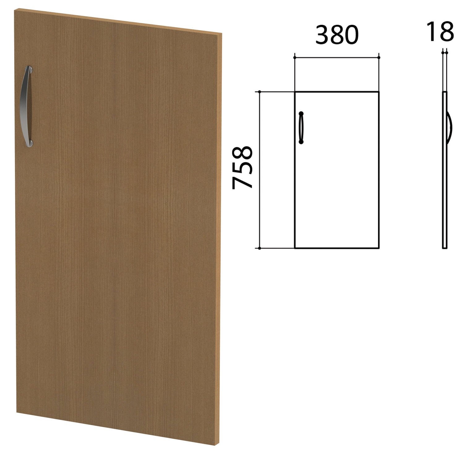 Дверь ЛДСП низкая "Эко/Этюд", правая, 380х18х758 мм, орех, 402988-190