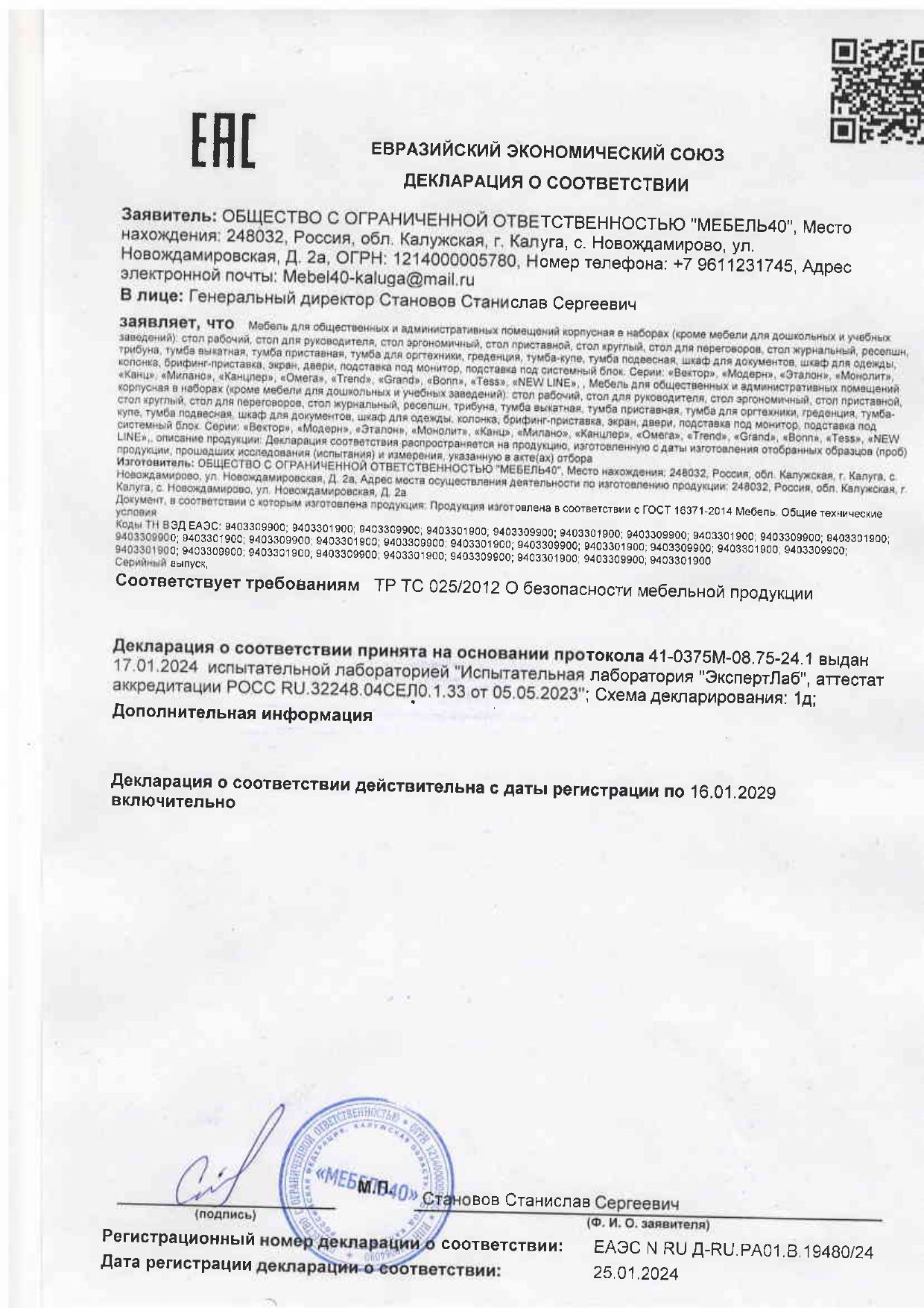 Комплект дверей совместно с каркасом шкафа (код 640545, 640546) предназначены для формирования комплекта шкафа для одежды (код 980543, 980544).