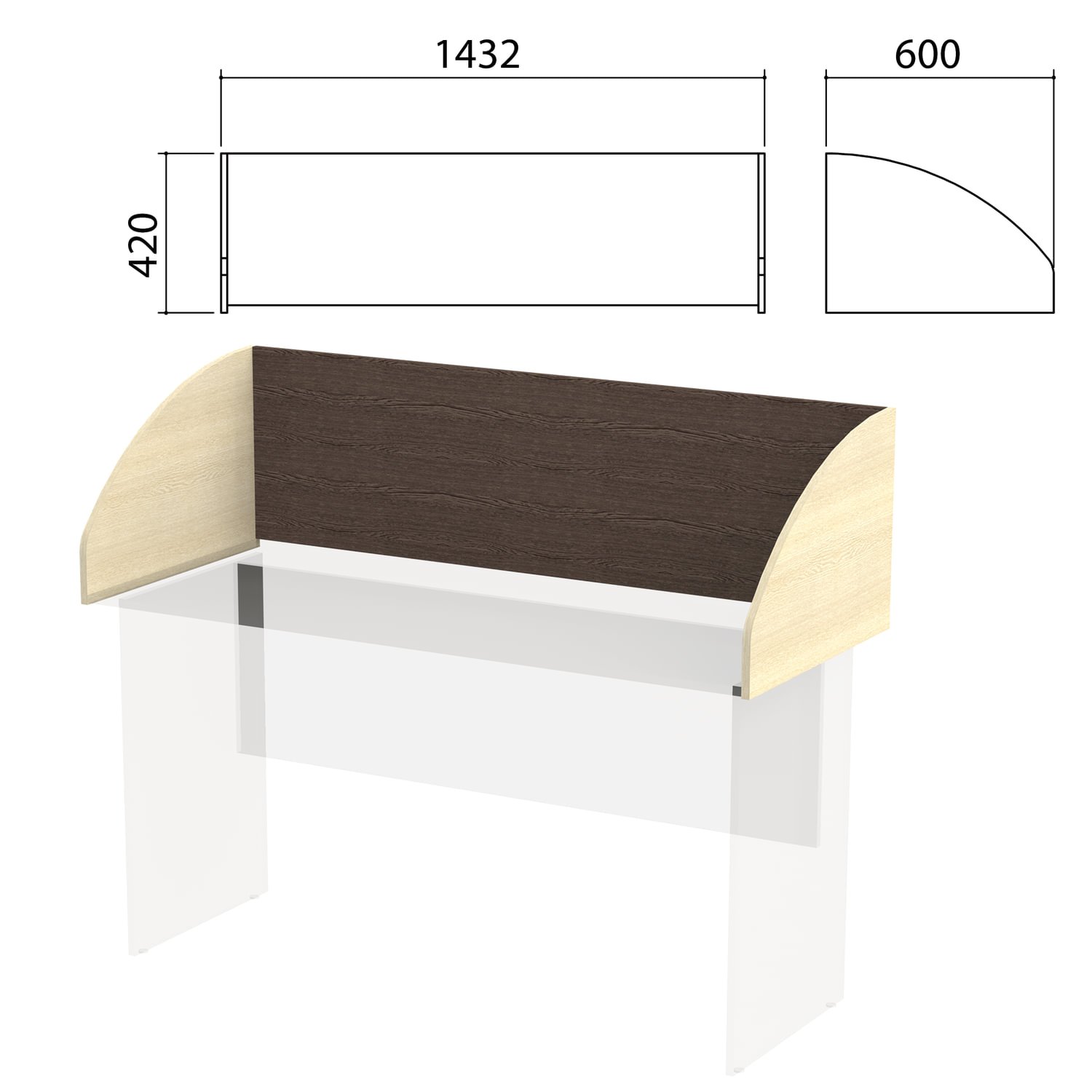 Экран-перегородка "Канц" 1432х600х420 мм, цвет венге/дуб молочный (КОМПЛЕКТ С ФУРНИТУРОЙ)