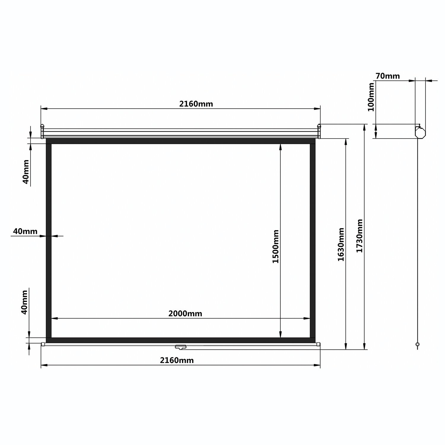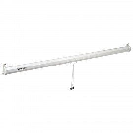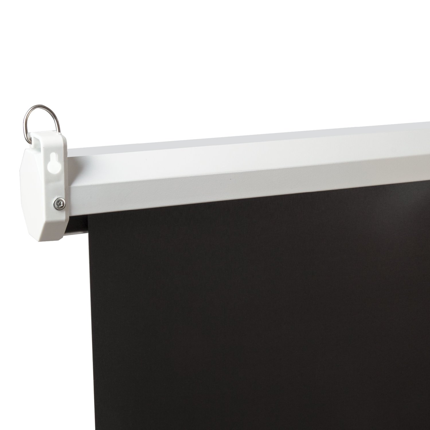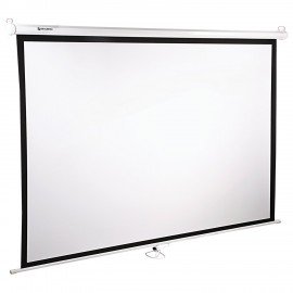 Экран с диагональю 100" и размером 150х200 см имеет черную кайму для улучшения восприятия яркости изображения. Коэффициент отражения составляет 1, угол обзора – 160°. Оснащен пружинным механизмом, благодаря которому полотно легко разворачивается и фиксируется на любой высоте. В комплекте инструкция и компактный многоразовый пузырьковый уровень для удобного монтирования на стену или потолок.