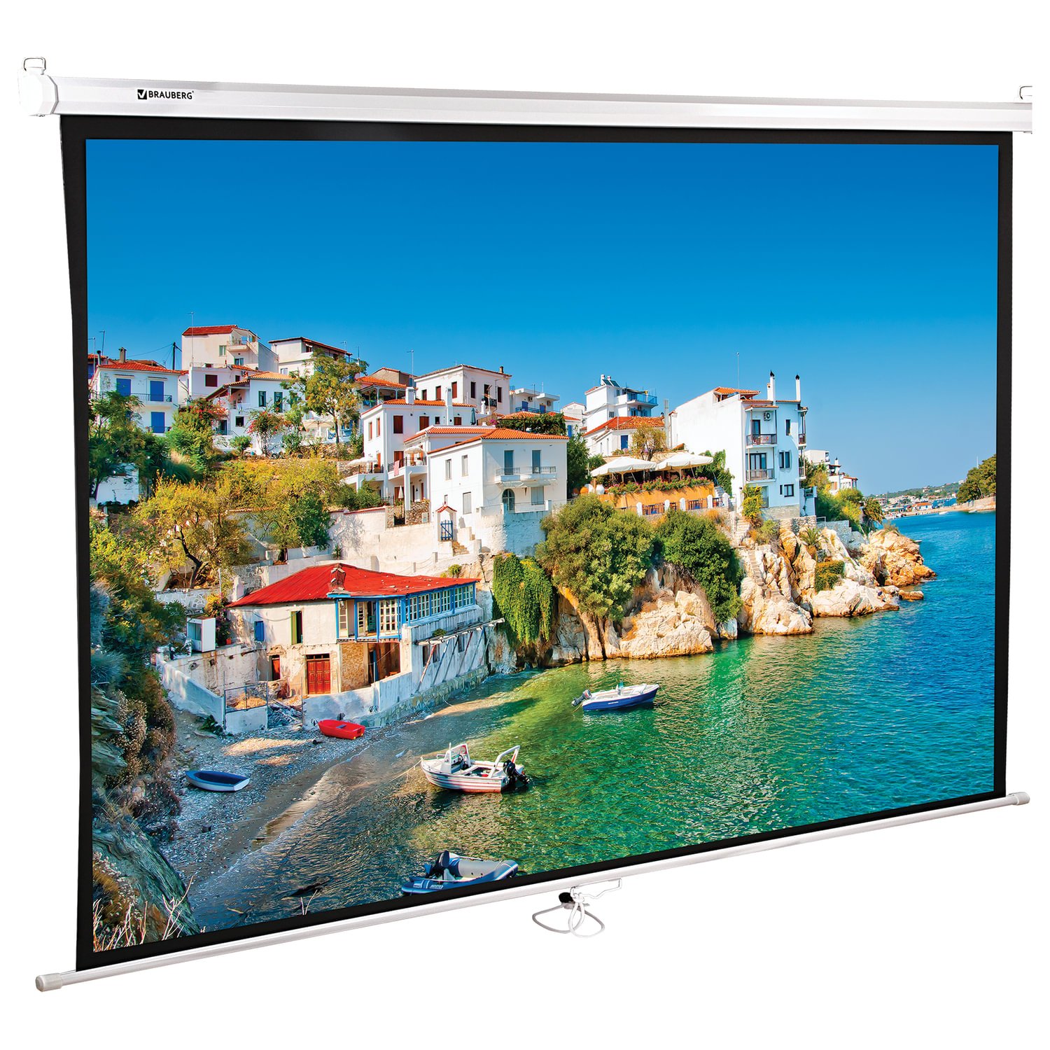 Удобный настенный экран BRAUBERG "WALL" с ручным приводом и широкими возможностями крепления предназначен для использования в качестве демонстрационного инвентаря при проведении уроков, тренингов, занятий, презентаций.