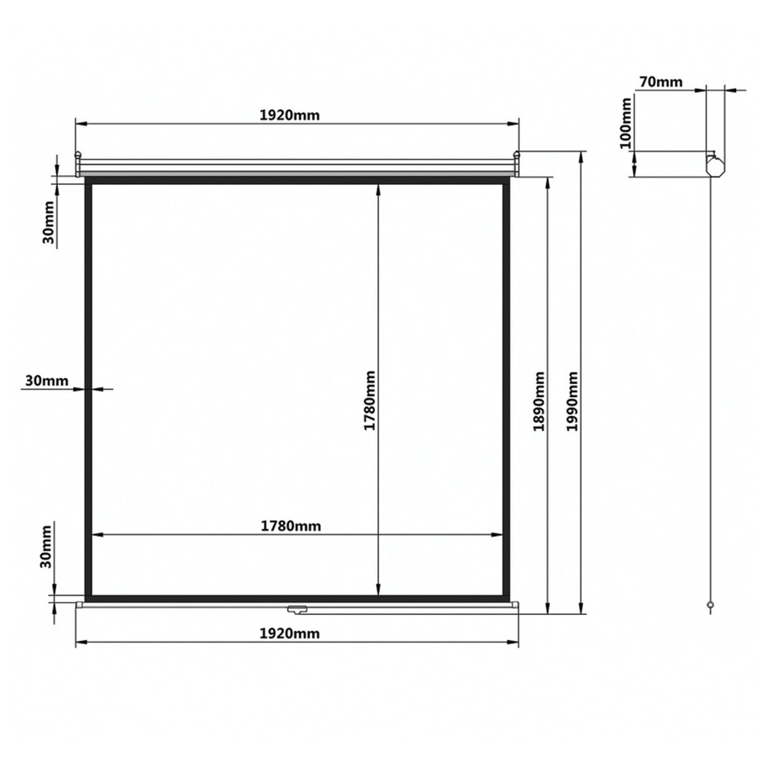 Экран с диагональю 99" и размером 180х180 см имеет черную кайму для улучшения восприятия яркости изображения. Коэффициент отражения составляет 1, угол обзора – 160°. Оснащен пружинным механизмом, благодаря которому полотно легко разворачивается и фиксируется на любой высоте. В комплекте инструкция и компактный многоразовый пузырьковый уровень для удобного монтирования на стену или потолок.