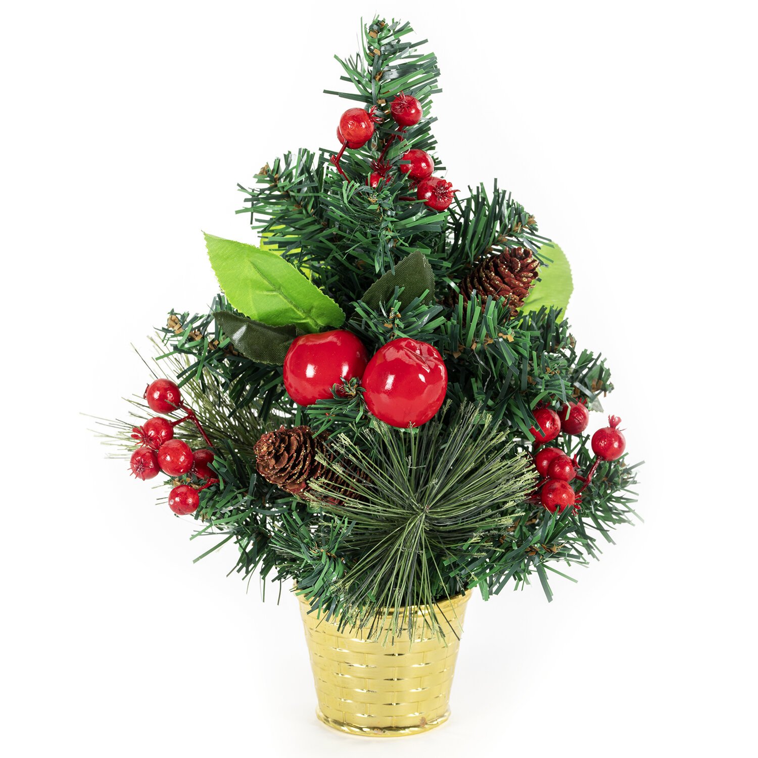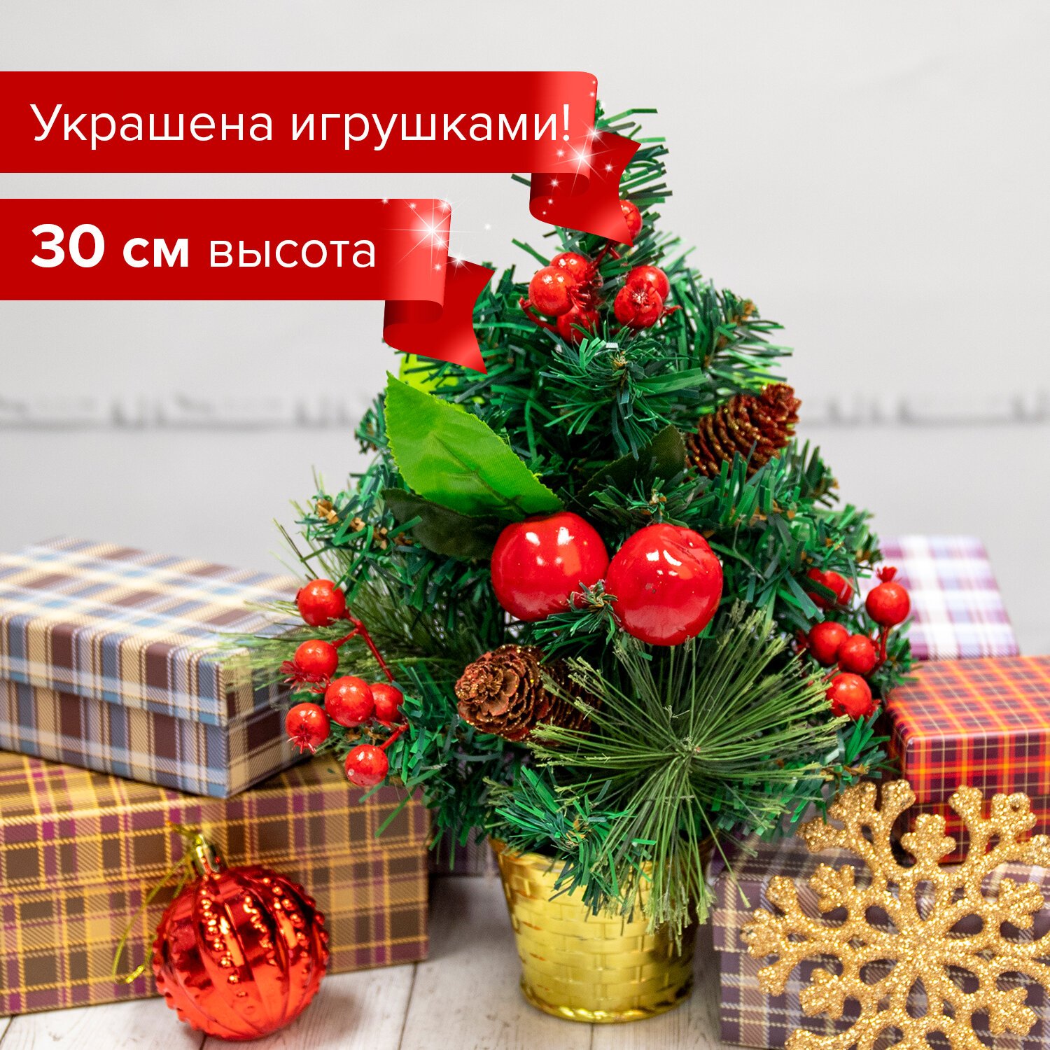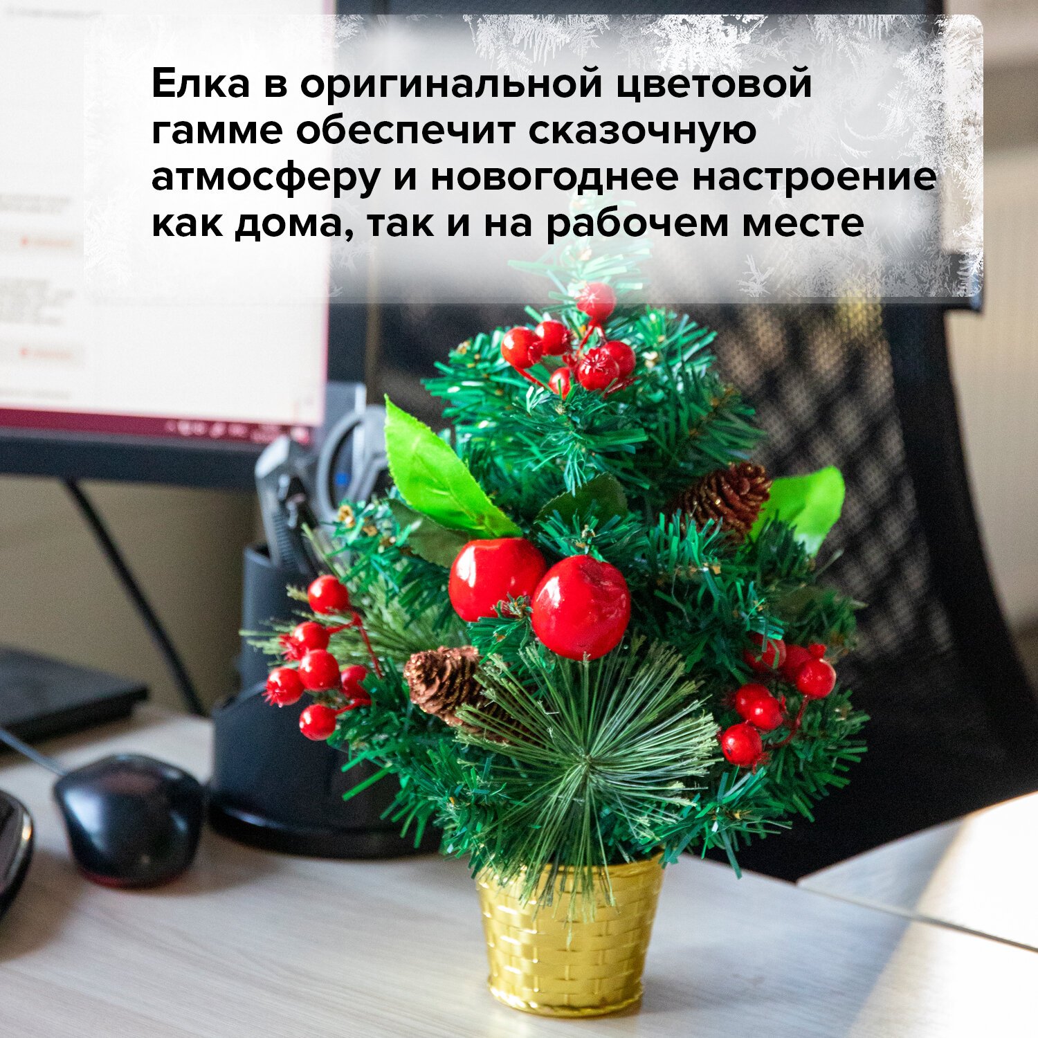 Ель искусственная декоративная 30 см, ПВХ, сосновые иголки, шишки, ягоды, ЗОЛОТАЯ СКАЗКА, 591327