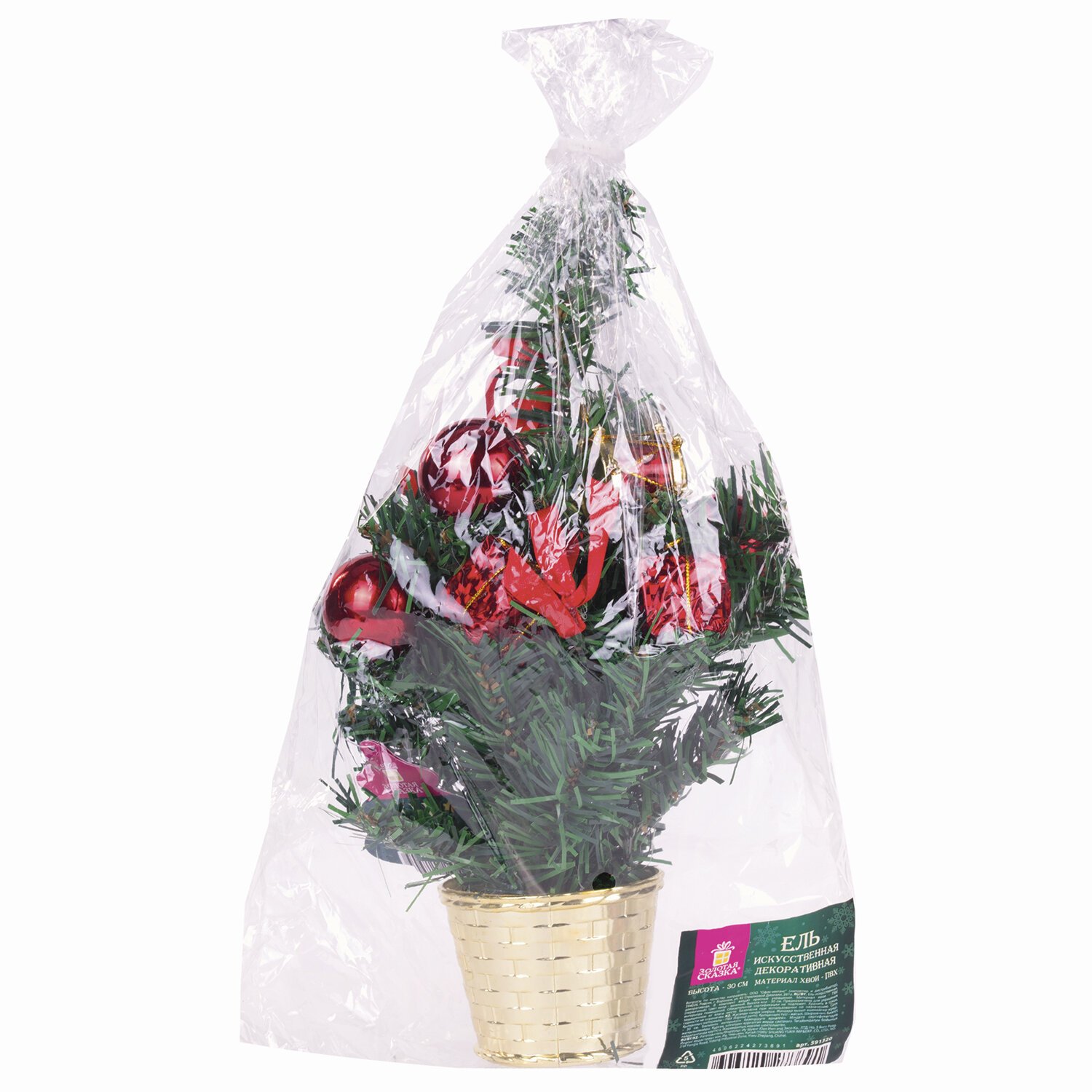 Ель искусственная новогодняя декоративная ЗОЛОТАЯ СКАЗКА 30 см, ПВХ, красные украшения, 591320