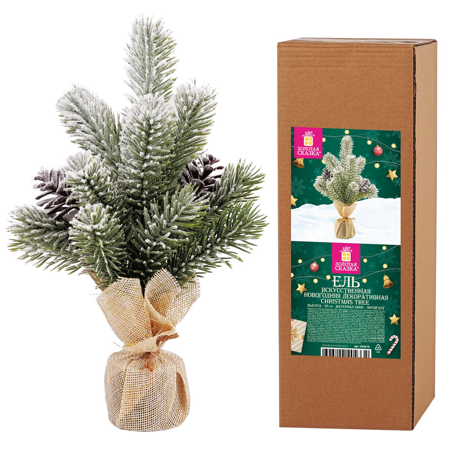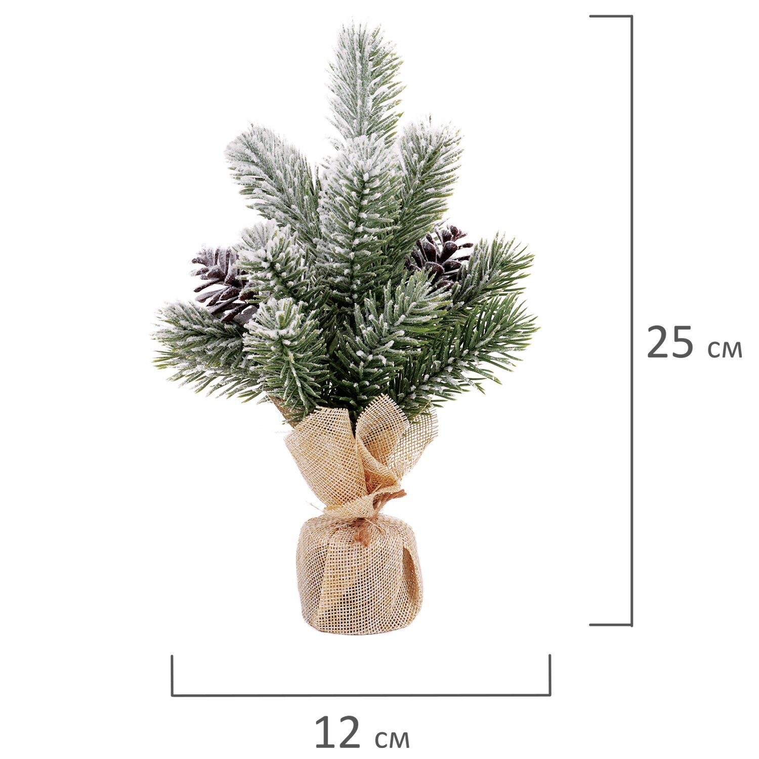 Ель новогодняя искусственная настольная 25 см, заснеженная, с шишками, литой ПЭТ, ЗОЛОТАЯ СКАЗКА, 592010