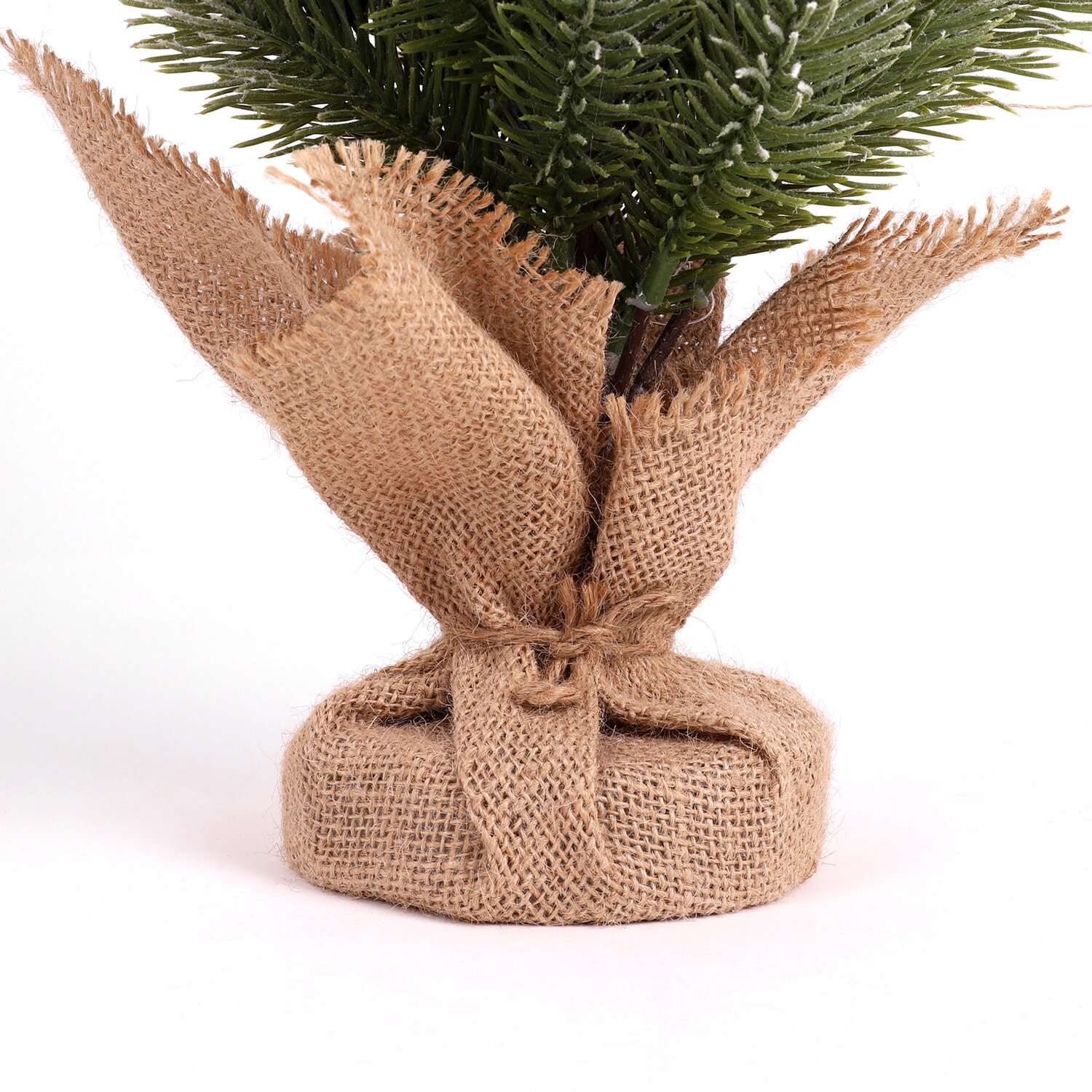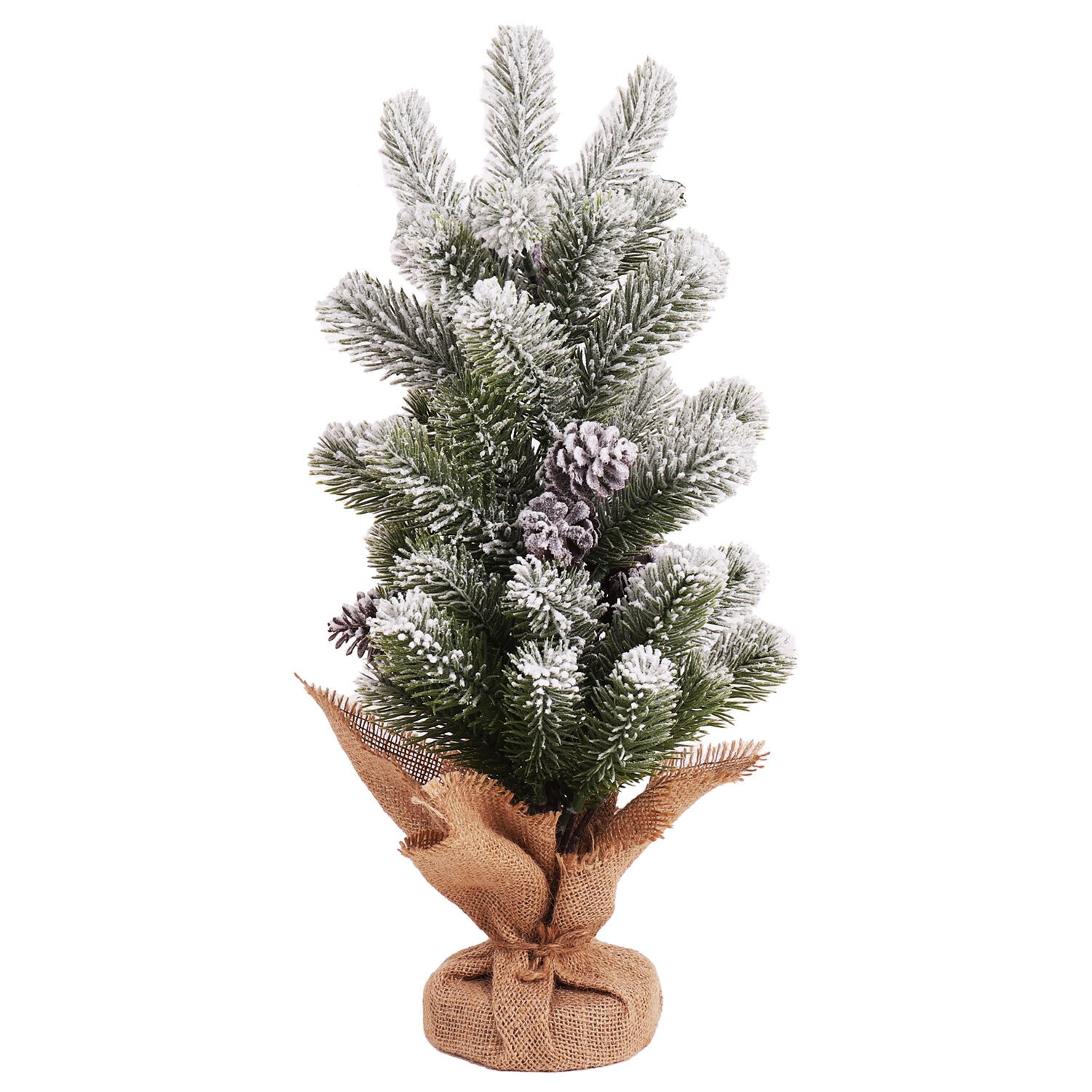 Ель искусственная настольная заснеженная с шишками высотой 50 см представляет собой конструкцию из металлического каркаса и закрепленных к нему ветвей.