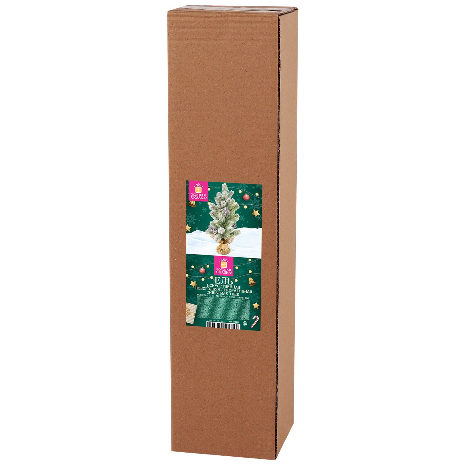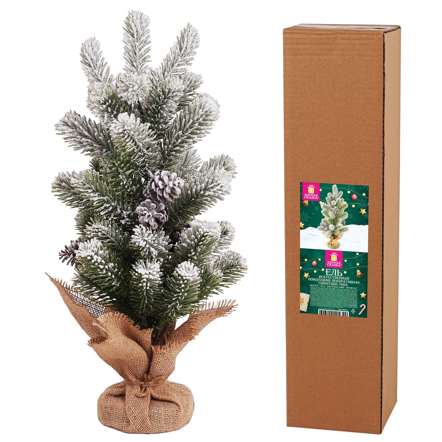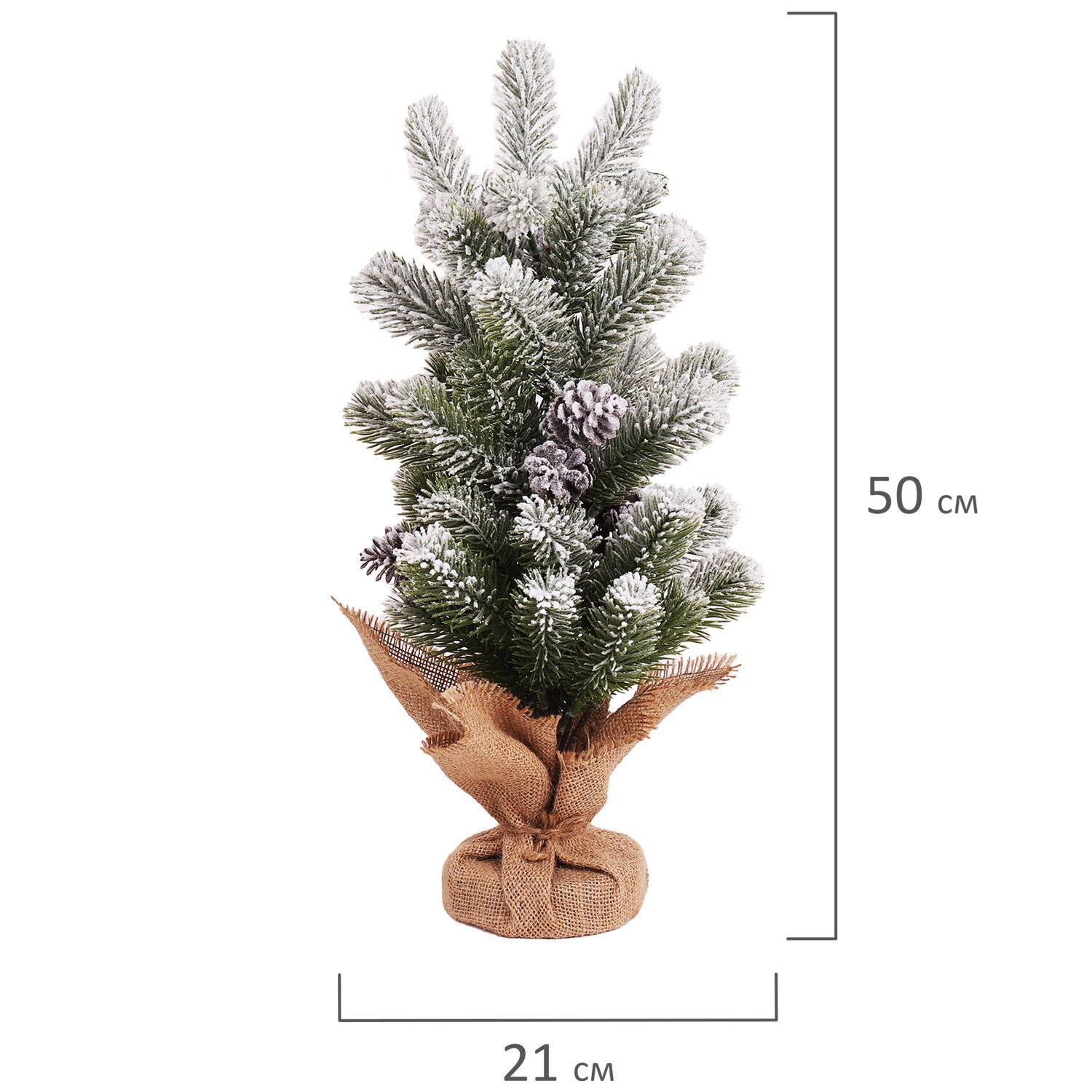 Ель новогодняя искусственная настольная 50 см, заснеженная, с шишками, литой ПЭТ, ЗОЛОТАЯ СКАЗКА, 592011