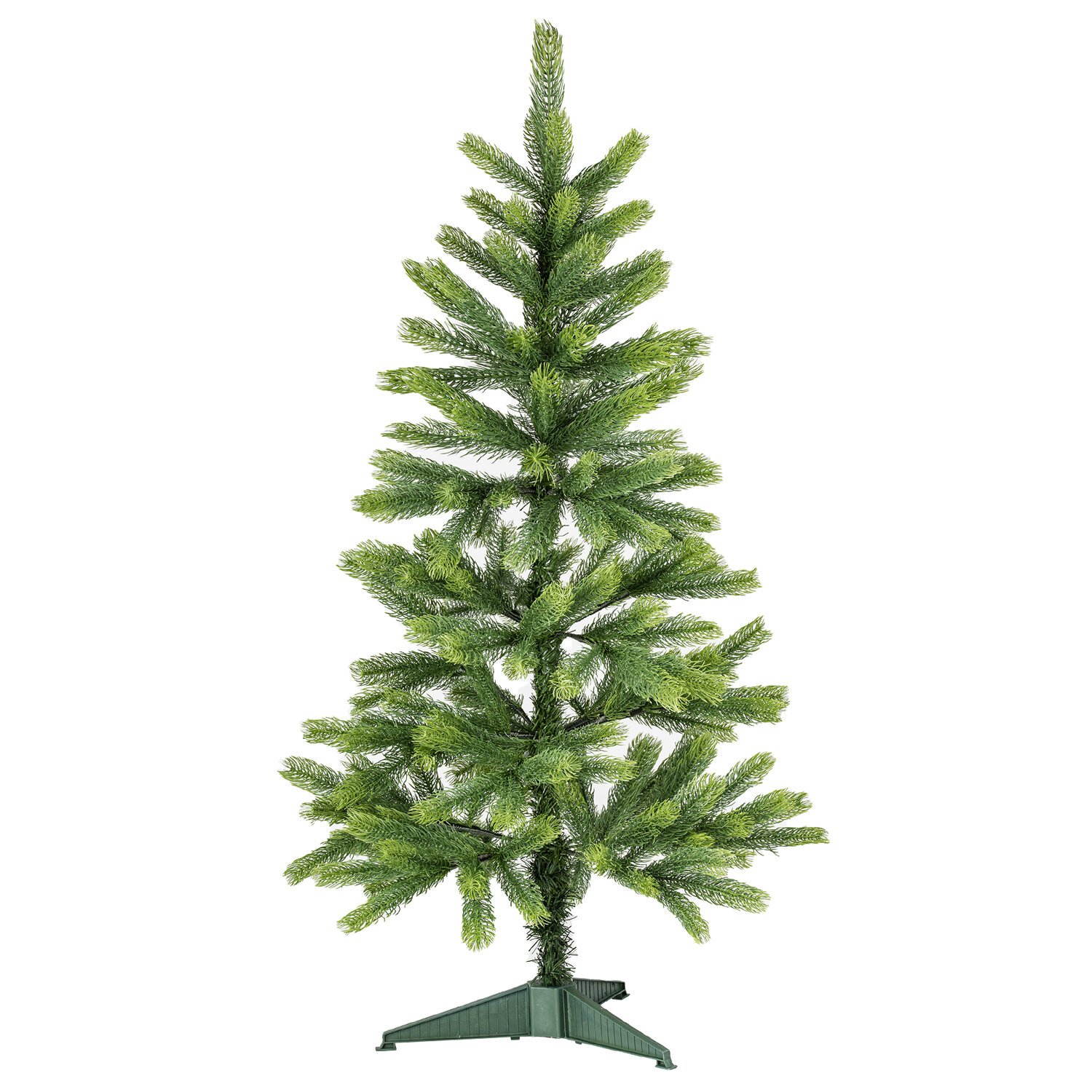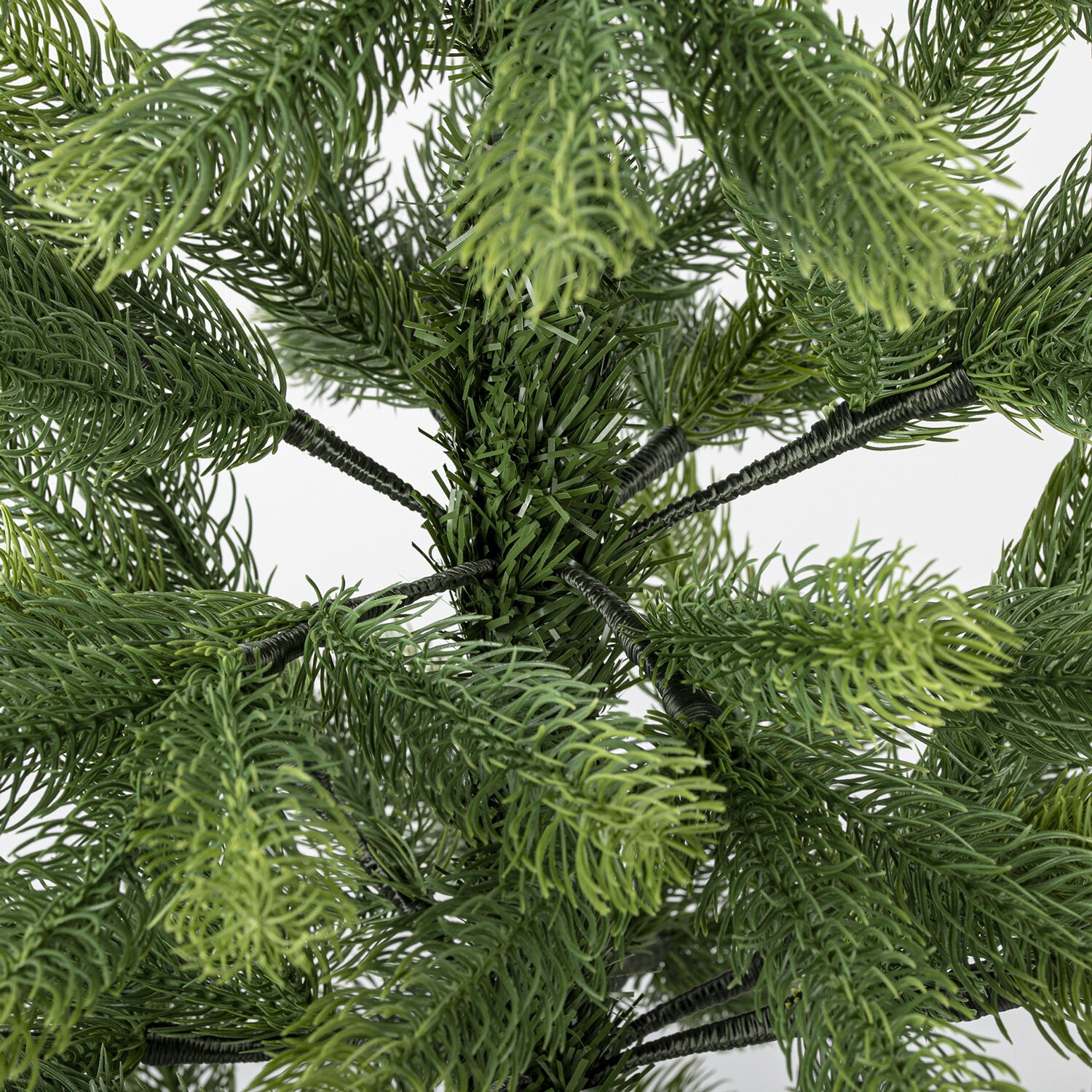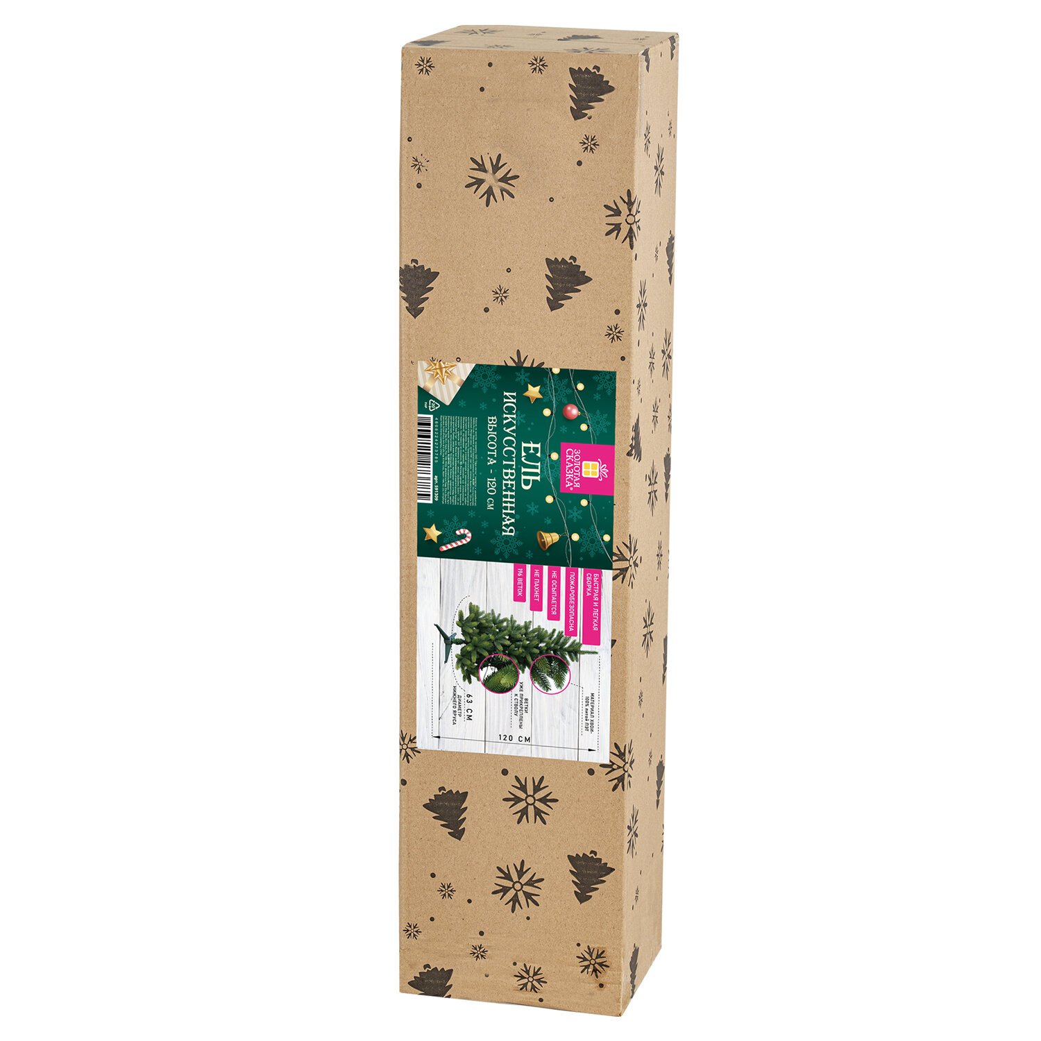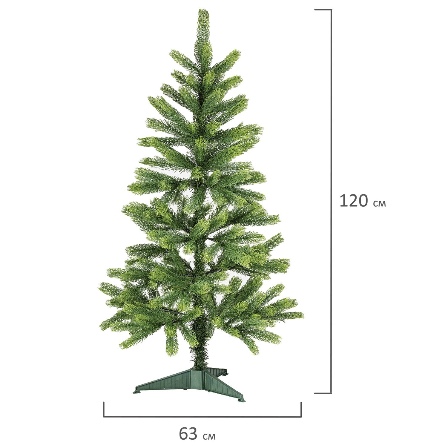 Ель искусственная напольная представляет собой конструкцию из металлического каркаса и закрепленных на нем ветвей. Материал хвои - литой ПЭТ. Цвет хвои - зеленый. Высота ели - 120 см. Диаметр нижнего яруса - 63 см. Количество веток - 196.