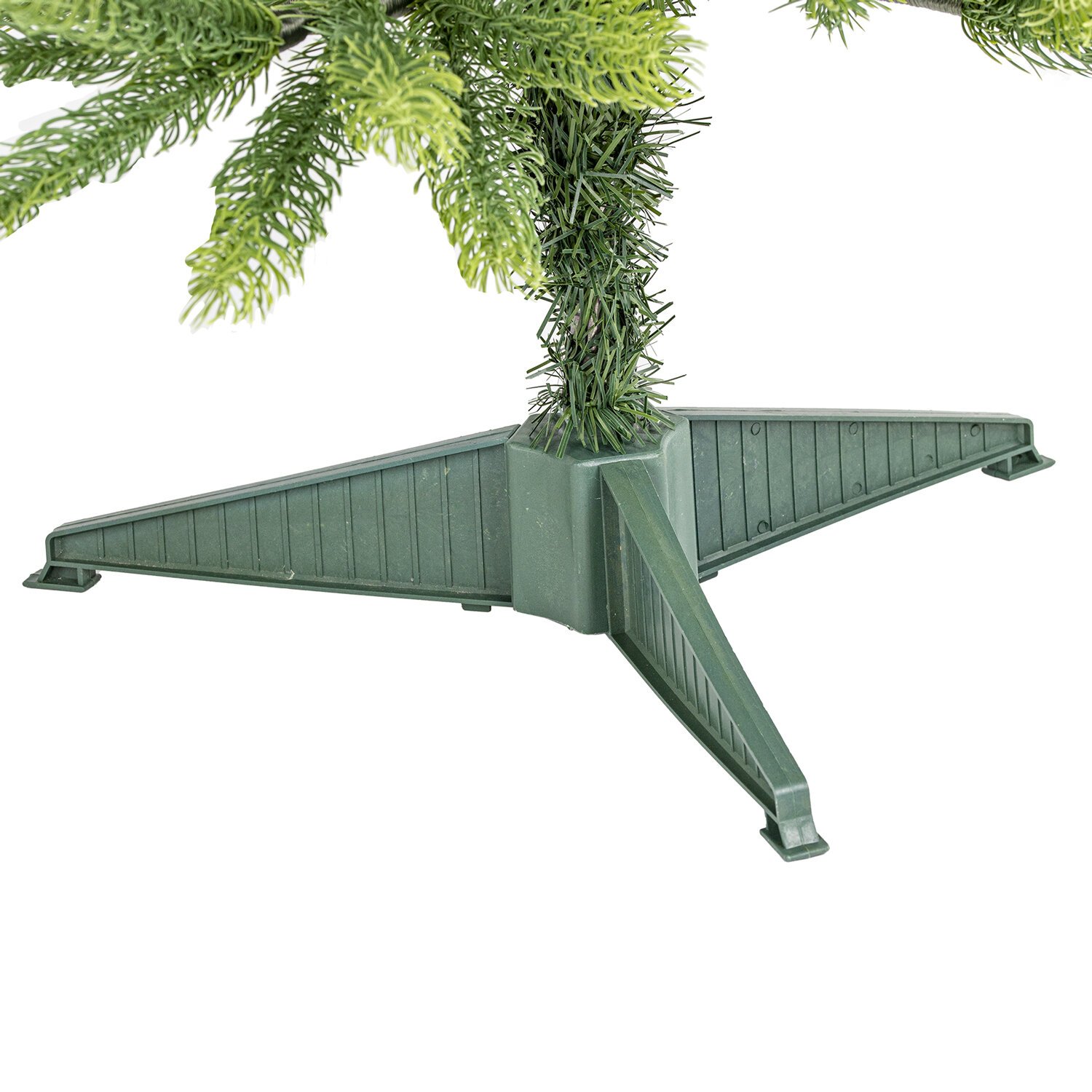 Ель быстро и легко собирается: необходимо сначала закрепить нижнюю часть ствола к подставке, затем вставить верхнюю часть ствола в нижнюю, после этого необходимо отогнуть крупные ветви от ствола и придать ели более пышную форму, расправляя мелкие веточки. Материал подставки - пластик.