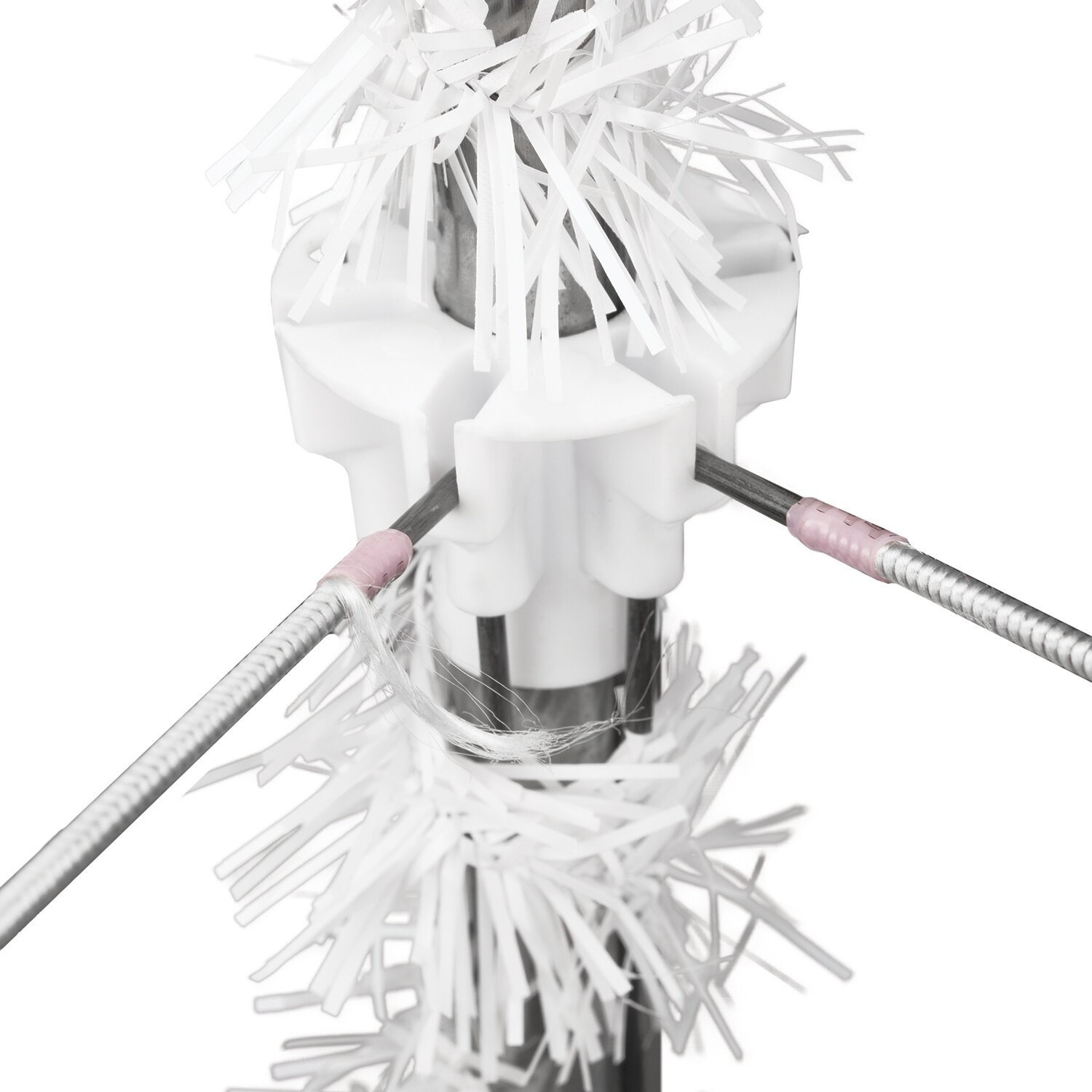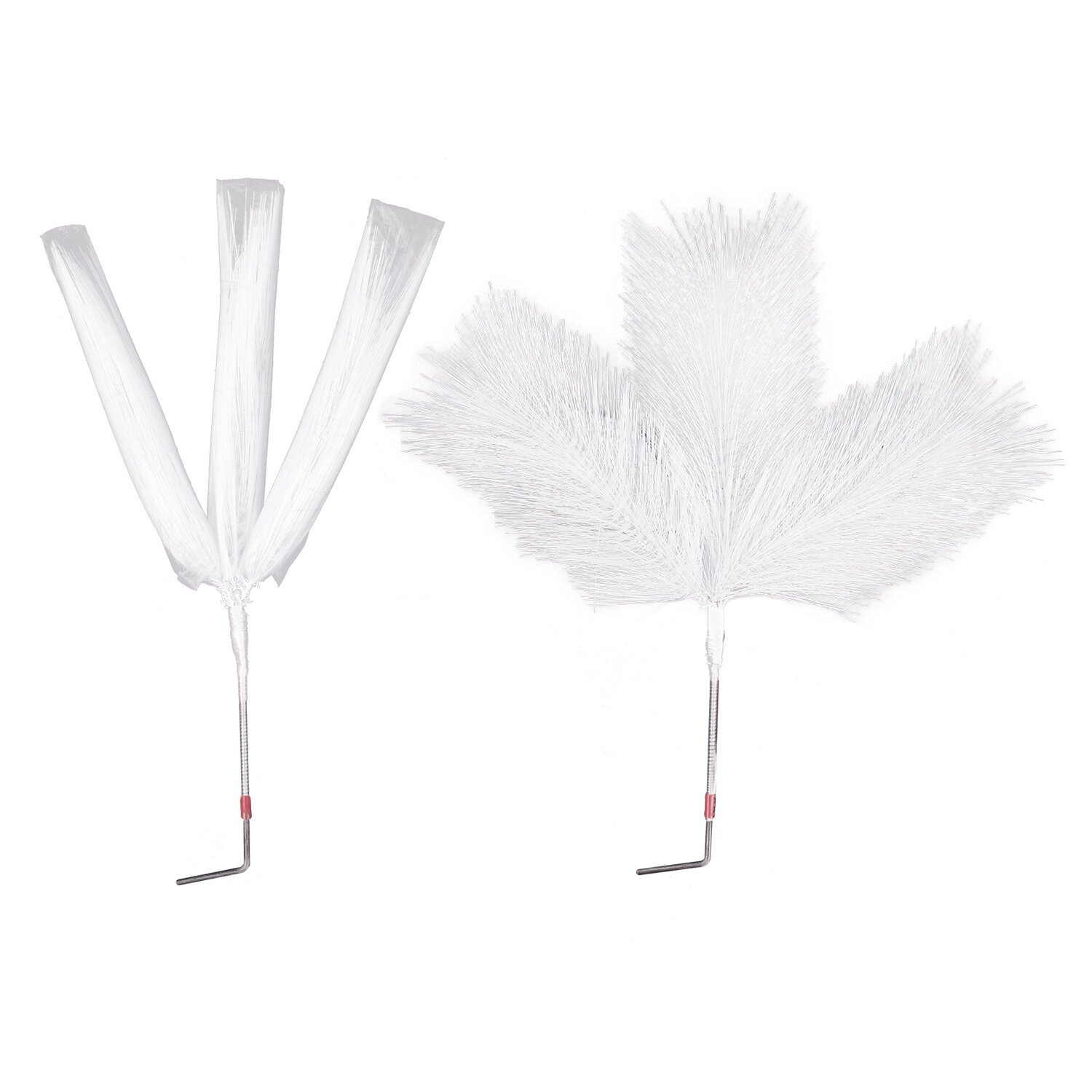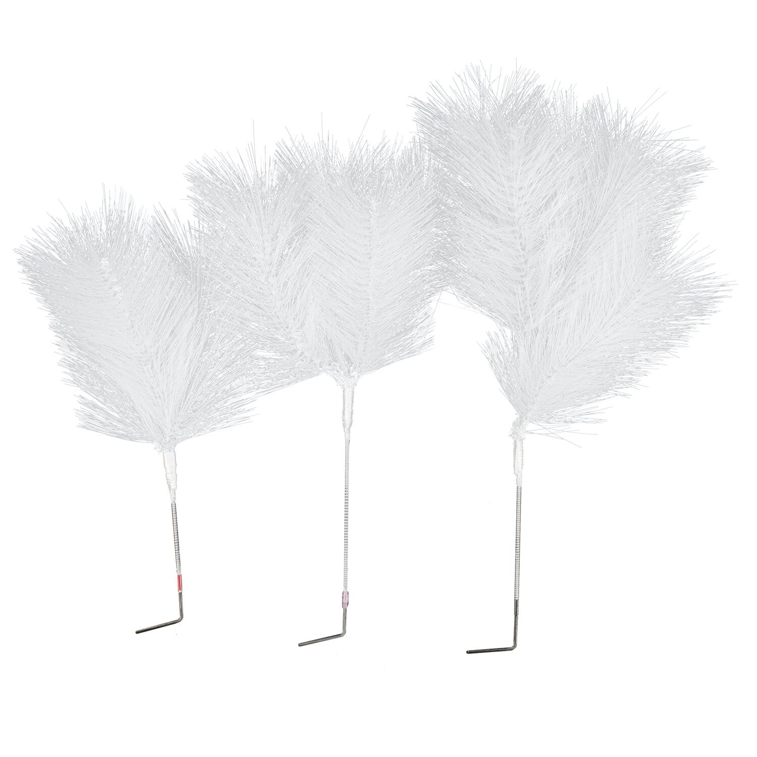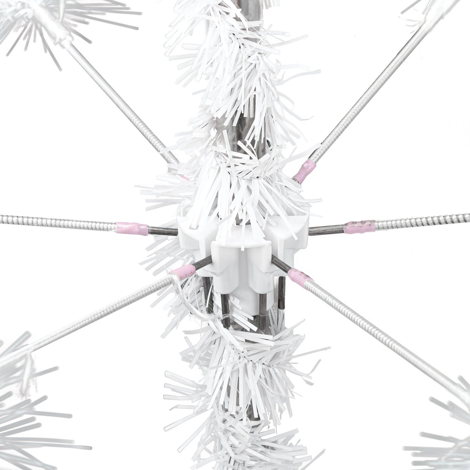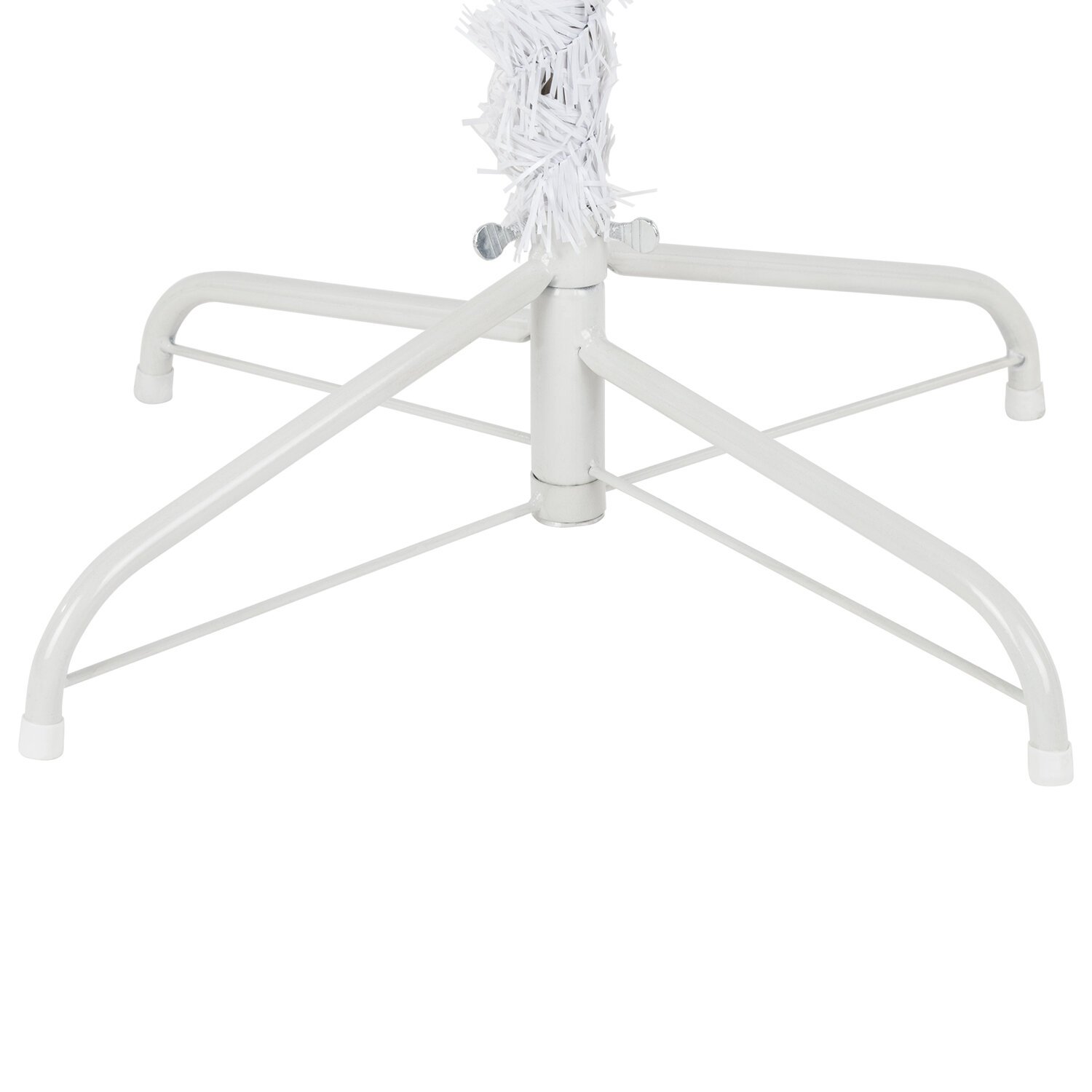 Ель искусственная напольная представляет собой конструкцию из металлического каркаса и закрепляемых на нем ветвей. Материал хвои - полиэтилентерефталат. Цвет хвои - белый. Высота ели - 150 см. Диаметр нижнего яруса - 76 см. Количество веток - 112.