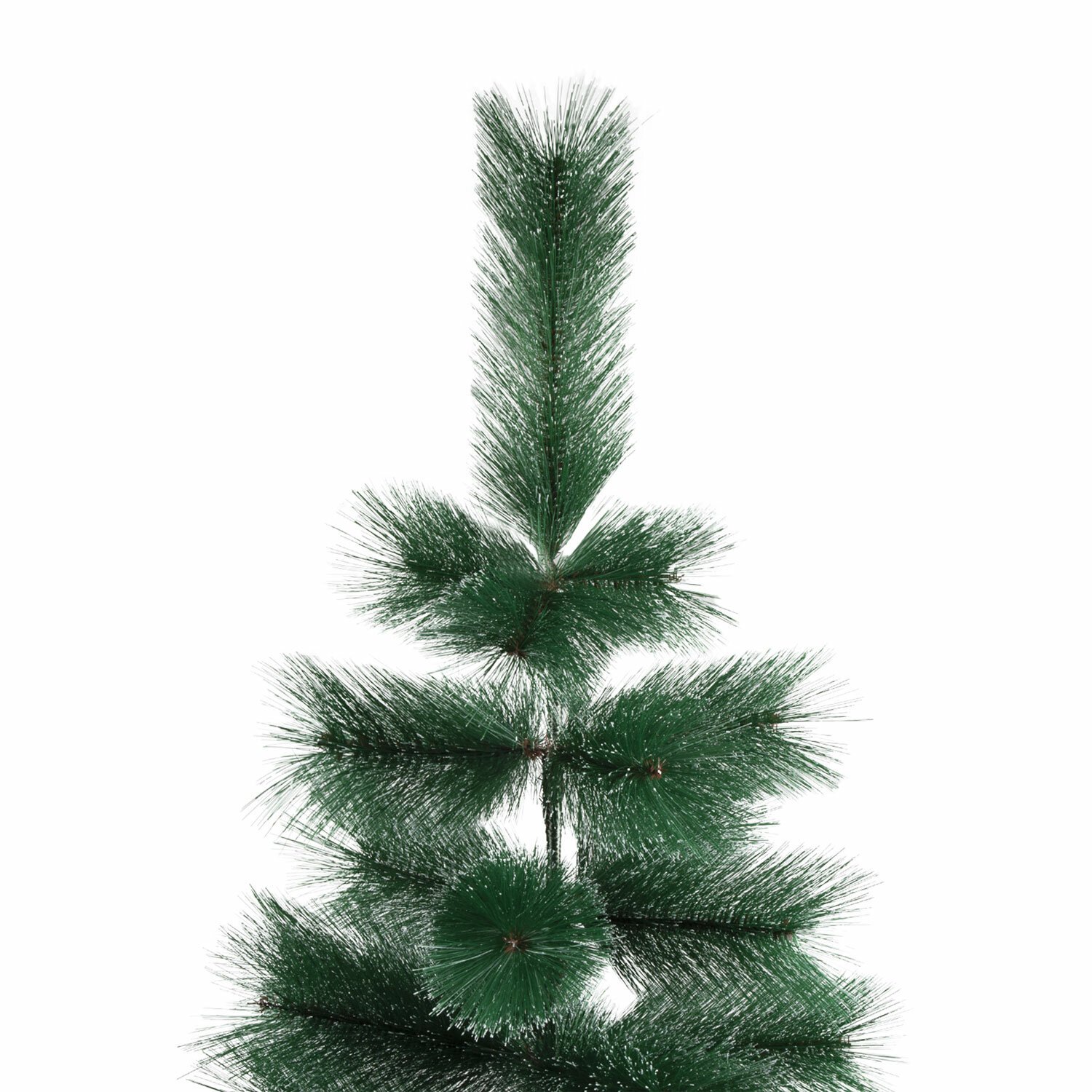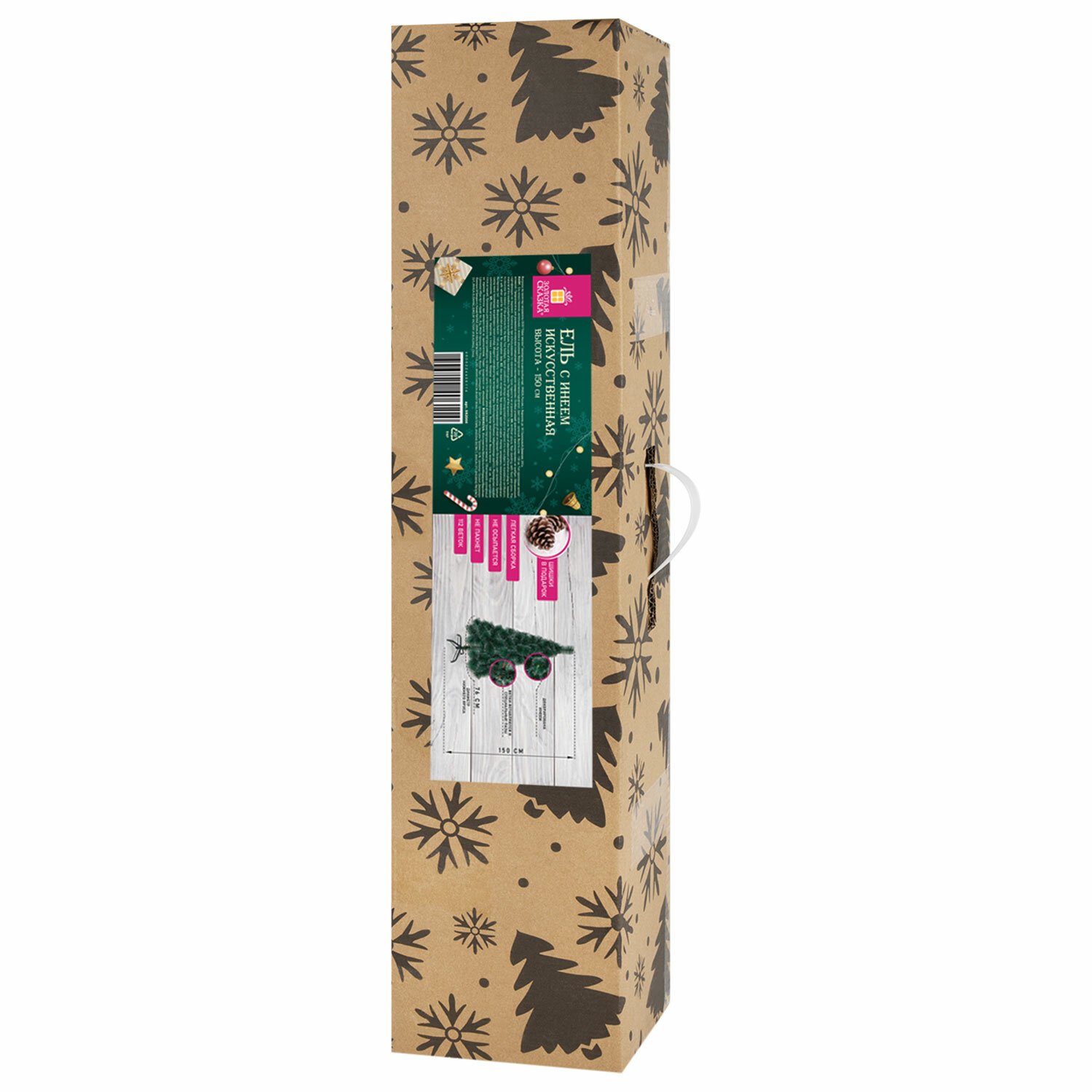 Ель искусственная напольная представляет собой конструкцию из металлического каркаса и закрепляемых на нем ветвей. Материал хвои - полиэтилентерефталат. Цвет хвои - зеленый. Кончики иголок декорированы "искусственным инеем". Высота ели - 150 см. Диаметр нижнего яруса - 76 см. Количество веток - 112.