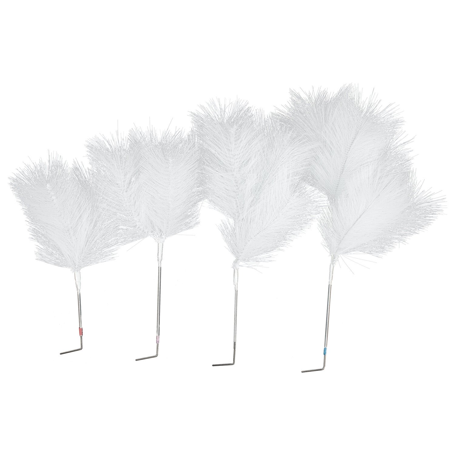 Ель искусственная напольная представляет собой конструкцию из металлического каркаса и закрепляемых на нем ветвей. Материал хвои - полиэтилентерефталат. Цвет хвои - белый. Высота ели - 180 см. Диаметр нижнего яруса - 93 см. Количество веток - 184.