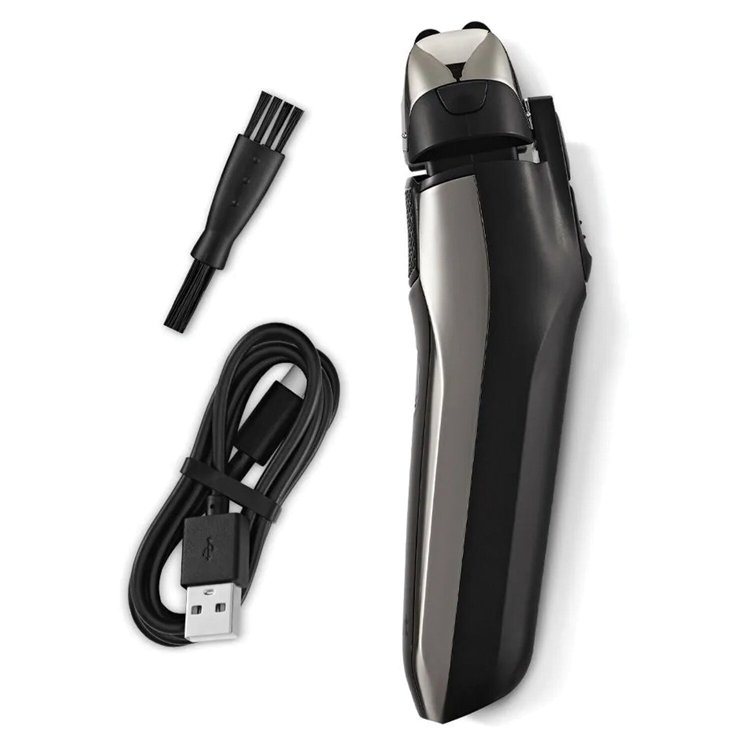 В корпус интегрирован выдвижной триммер шириной 25,5 мм, который позволяет легко подравнять усы, придать форму бороде или сделать чёткий контур. Благодаря компактным размерам (66 х 46 х 158 мм) и лёгкому весу всего 90 грамм, бритву удобно брать с собой в поездки, командировки или путешествия. В комплекте идёт защитная крышка, которая предохраняет лезвия при хранении и транспортировке.