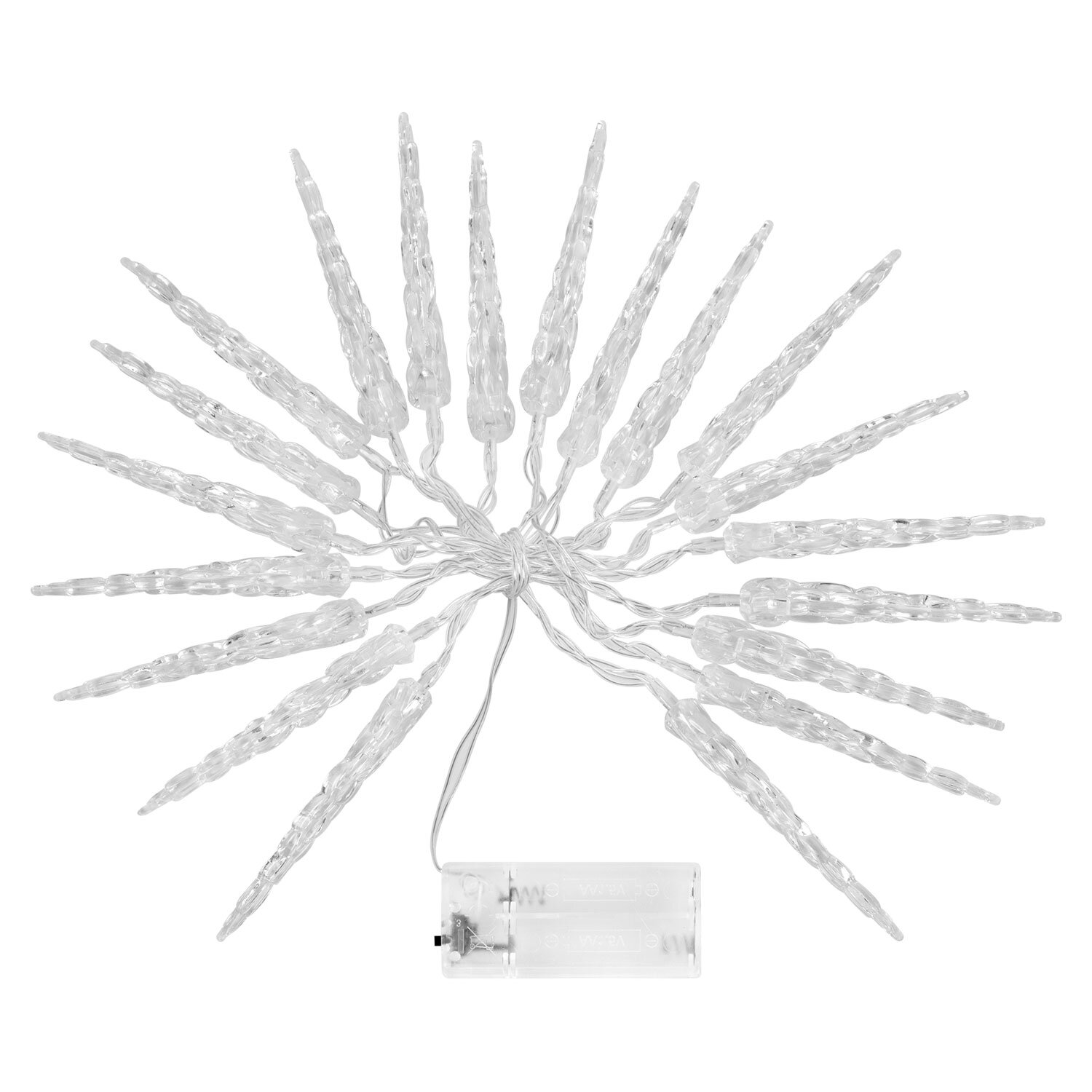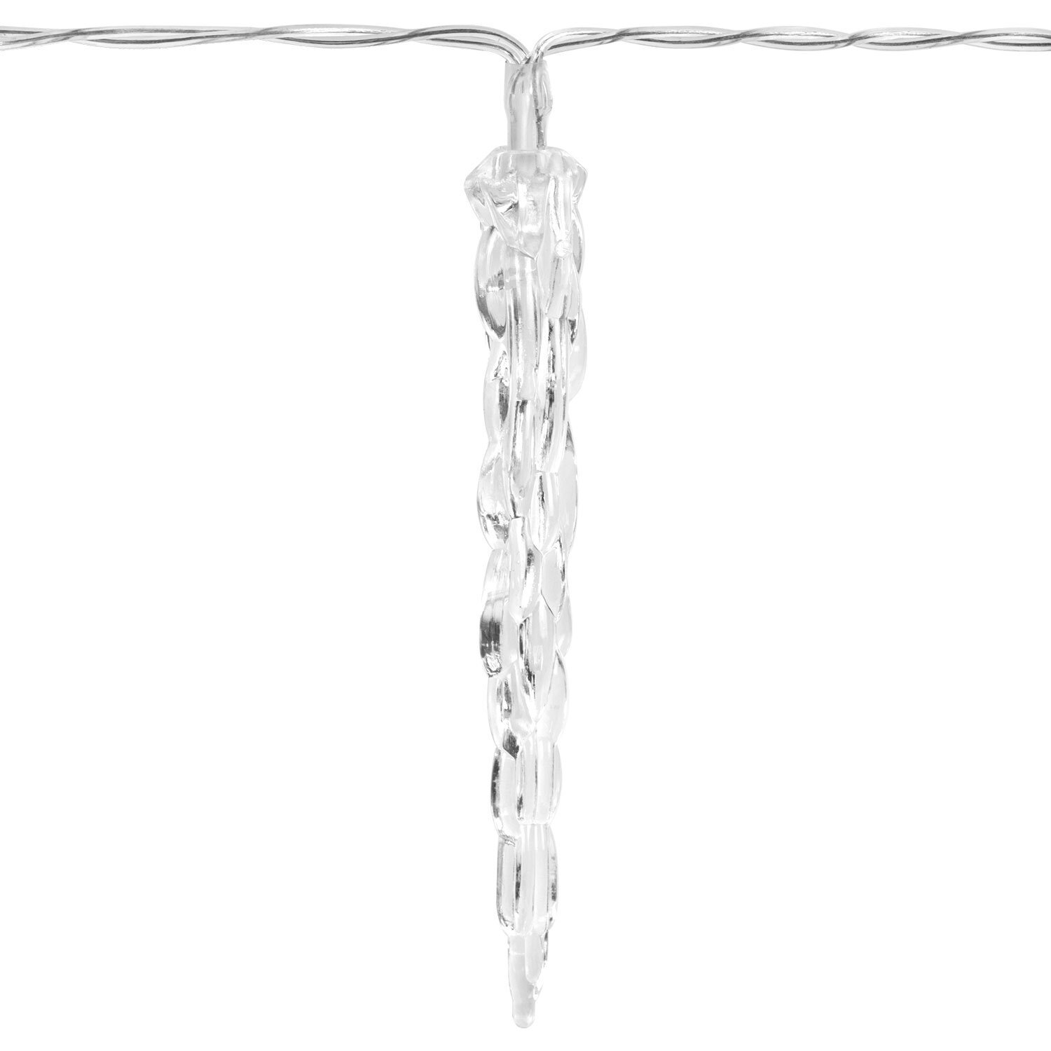Электрическая светодиодная гирлянда представляет собой светодиоды, соединенные между собой электрическим проводом. Тип конструкции – "Нить". Лампы украшены прозрачными декоративными колпачками в виде сосулек.