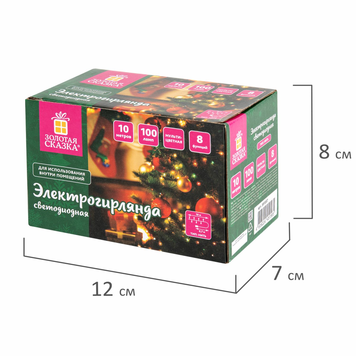 Электрогирлянда-нить комнатная "Стандарт" 10 м, 100 LED, мультицветная, 220V, контроллер, ЗОЛОТАЯ СКАЗКА, 591357