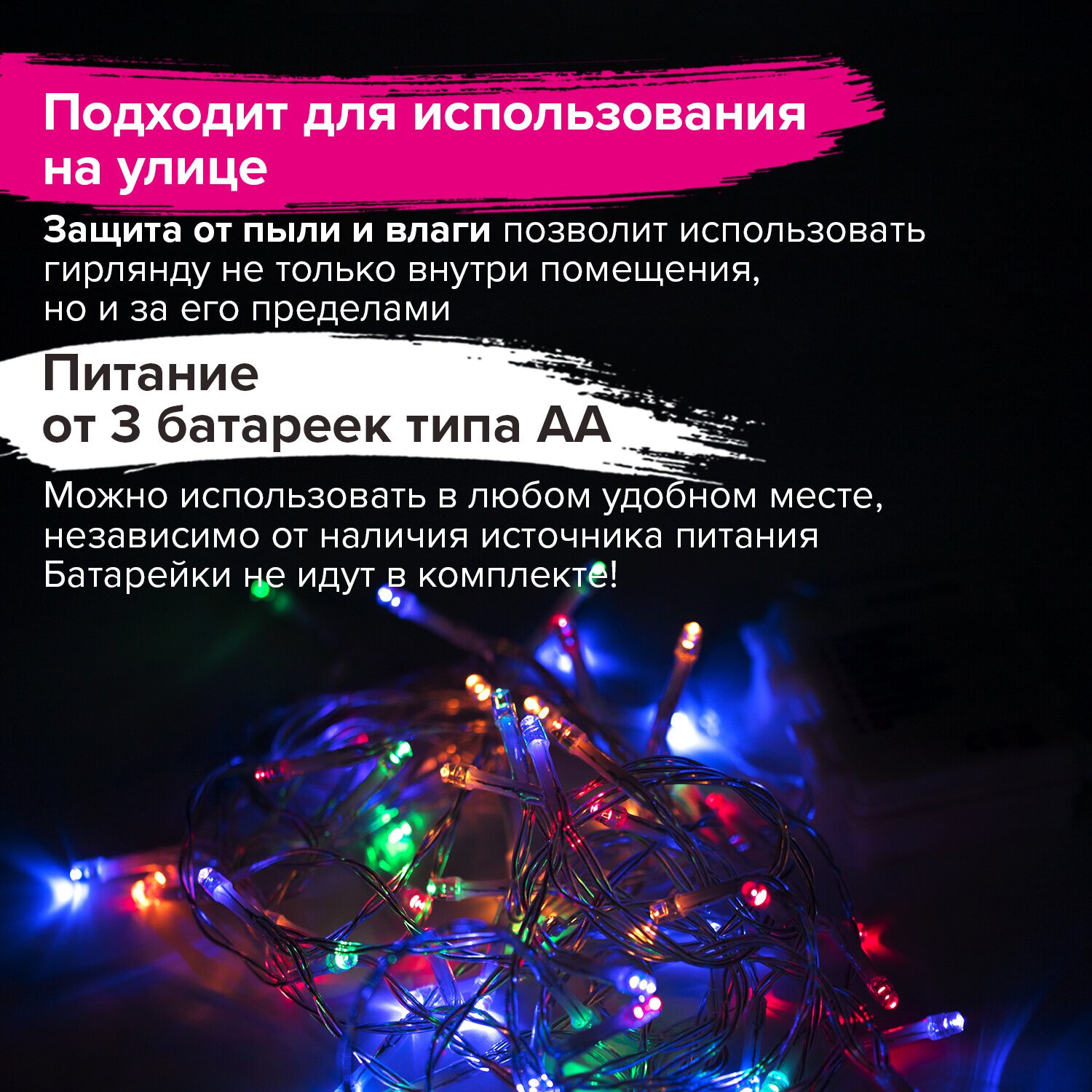 Электрогирлянда-нить уличная "Стандарт" 8 м, 100 LED, мультицветная, на батарейках, ЗОЛОТАЯ СКАЗКА, 591292