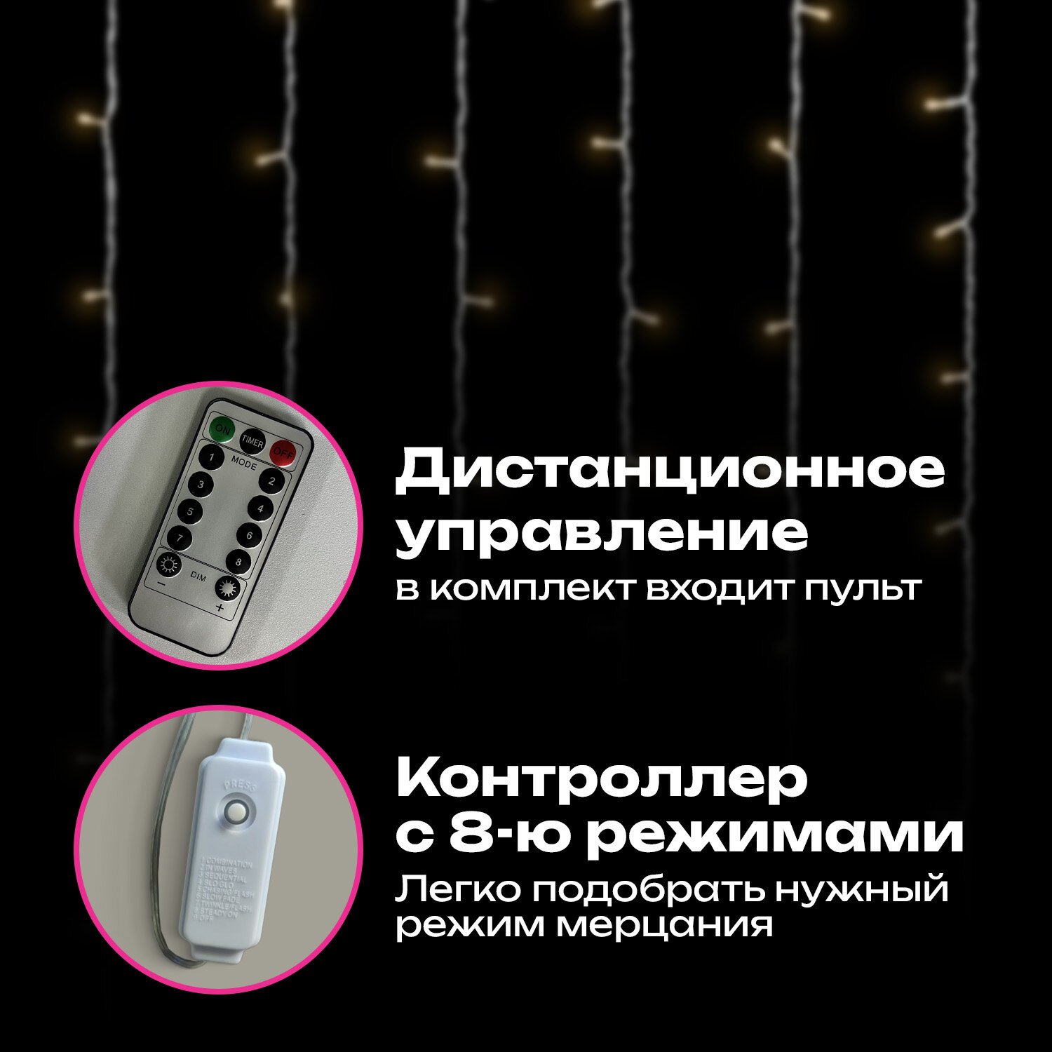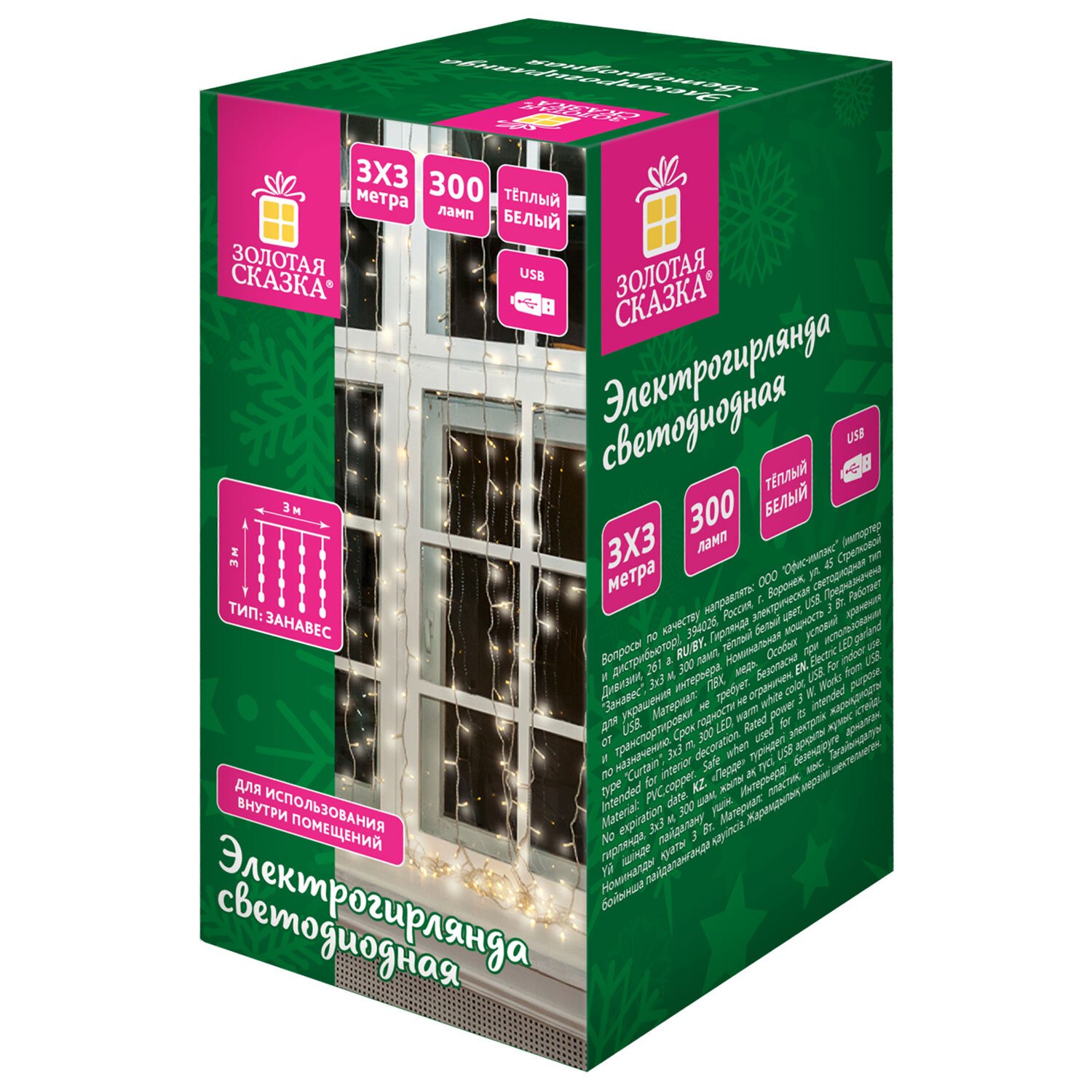 Электрогирлянда-занавес комнатная "Штора" 3х3м, 300LED, тёплый белый, USB, ЗОЛОТАЯ СКАЗКА, 592556