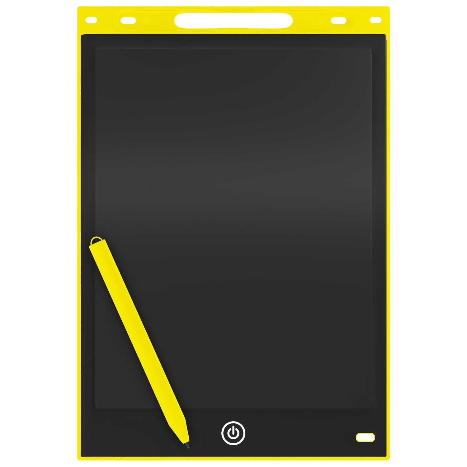Электронный планшет для рисования – отличная альтернатива традиционным блокнотам и альбомам. Устройство в желтом корпусе имеет 10-дюймовый LCD-экран (размер экрана 147х197 мм), который обеспечивает долгий срок службы. Работа планшета осуществляется с помощью ручки, которая функционирует от батареек (в комплект входит CR 2025). Такой планшет позволяет детям рисовать и одновременно развивать навыки счета, делать записи, а также помогает экономить бумагу.
