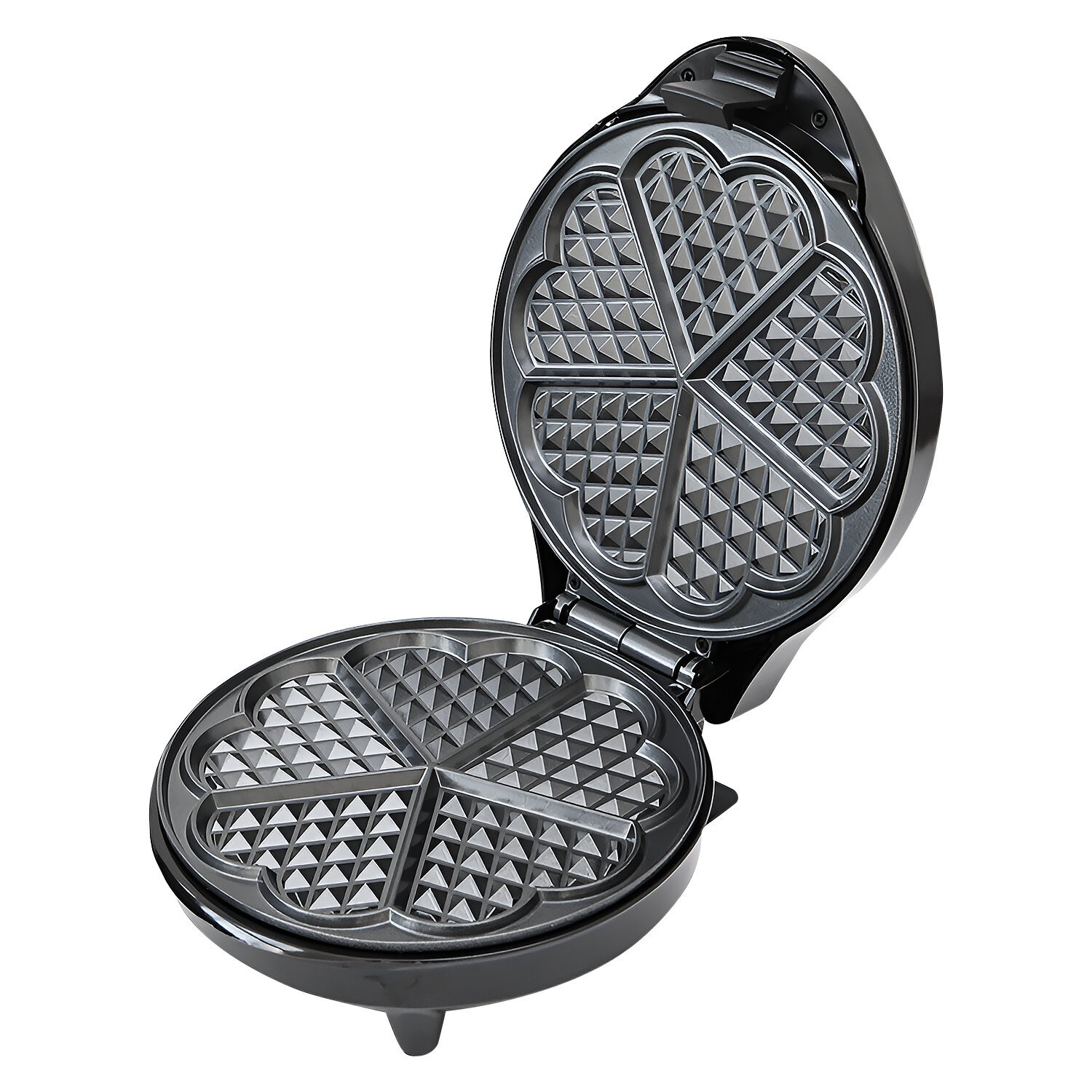 Антипригарное покрытие и встроенный нагревательный элемент мощностью 1200 Вт обеспечивают равномерное приготовление пяти вафель-сердечек одновременно.
