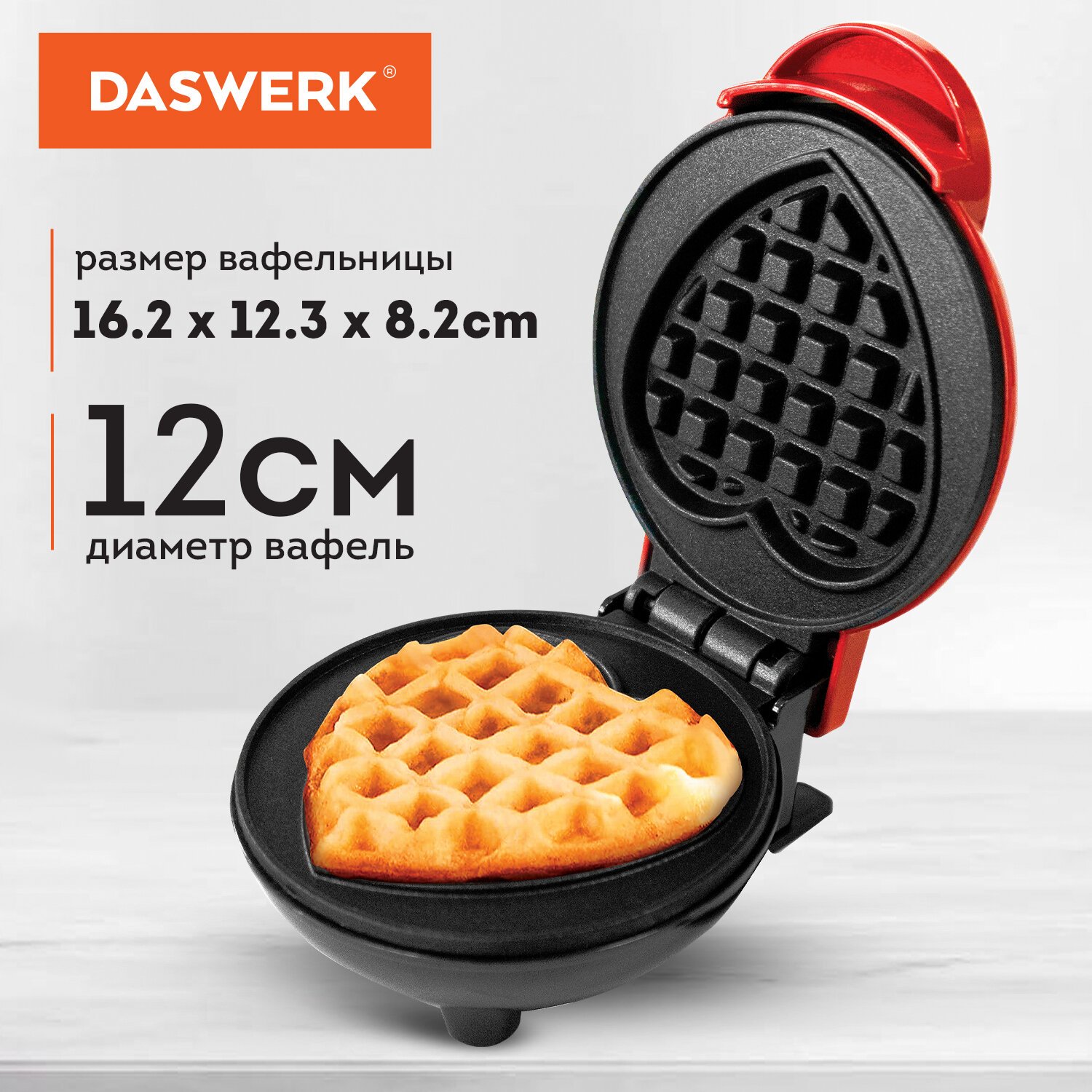 Электровафельница антипригарная для вафель-сердечек, 5 вафель, 1200 Вт, DASWERK, WM-7, 455654
