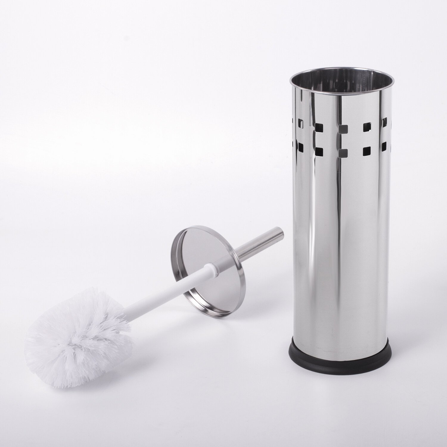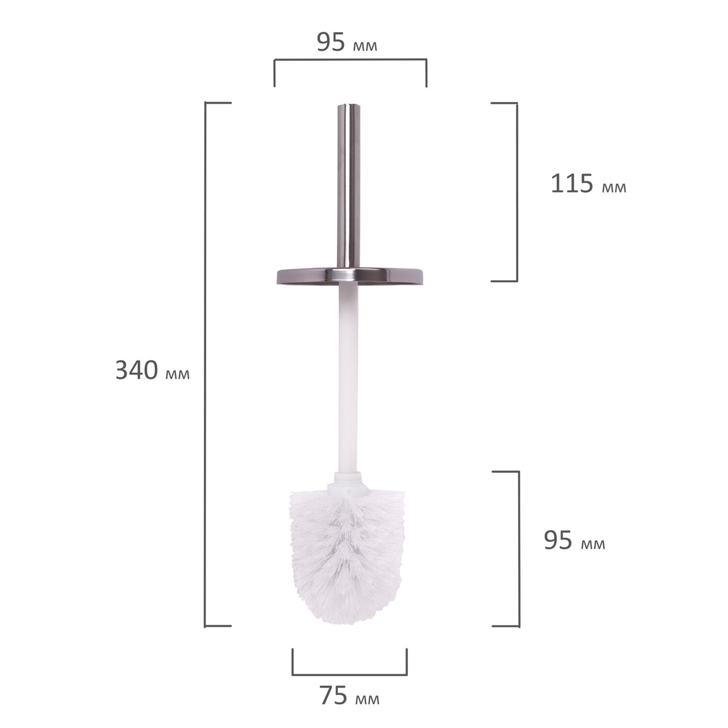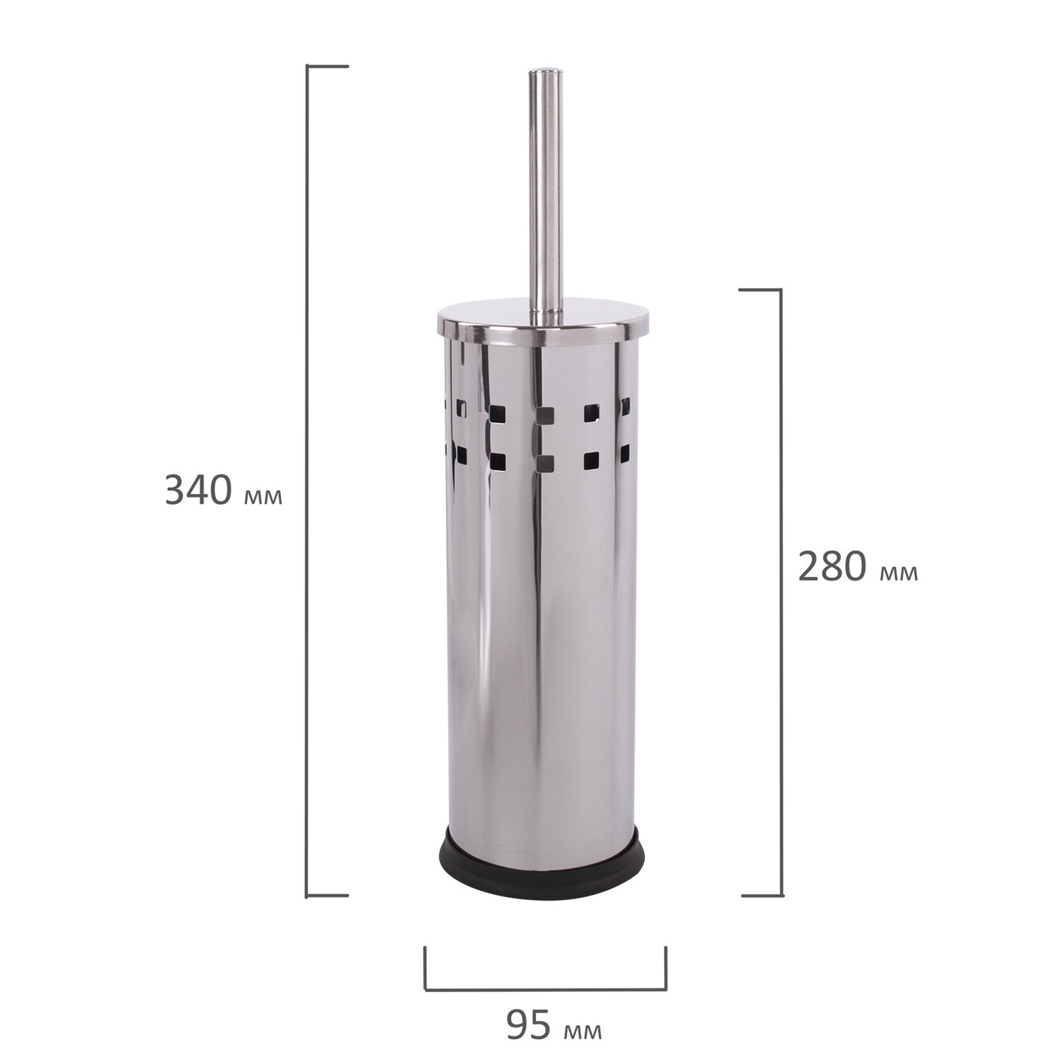 Изготовлен из зеркальной нержавеющей стали. Диаметр подставки - 9,5 см. Диаметр щетки - 7,5 см. Высота - 34 см.