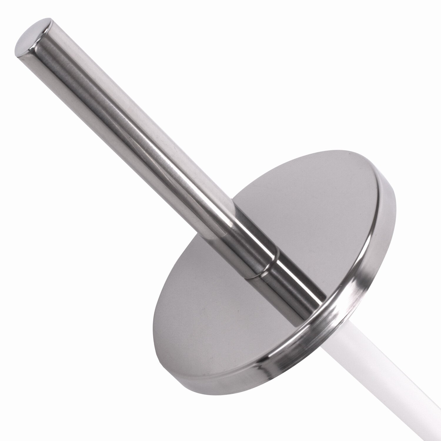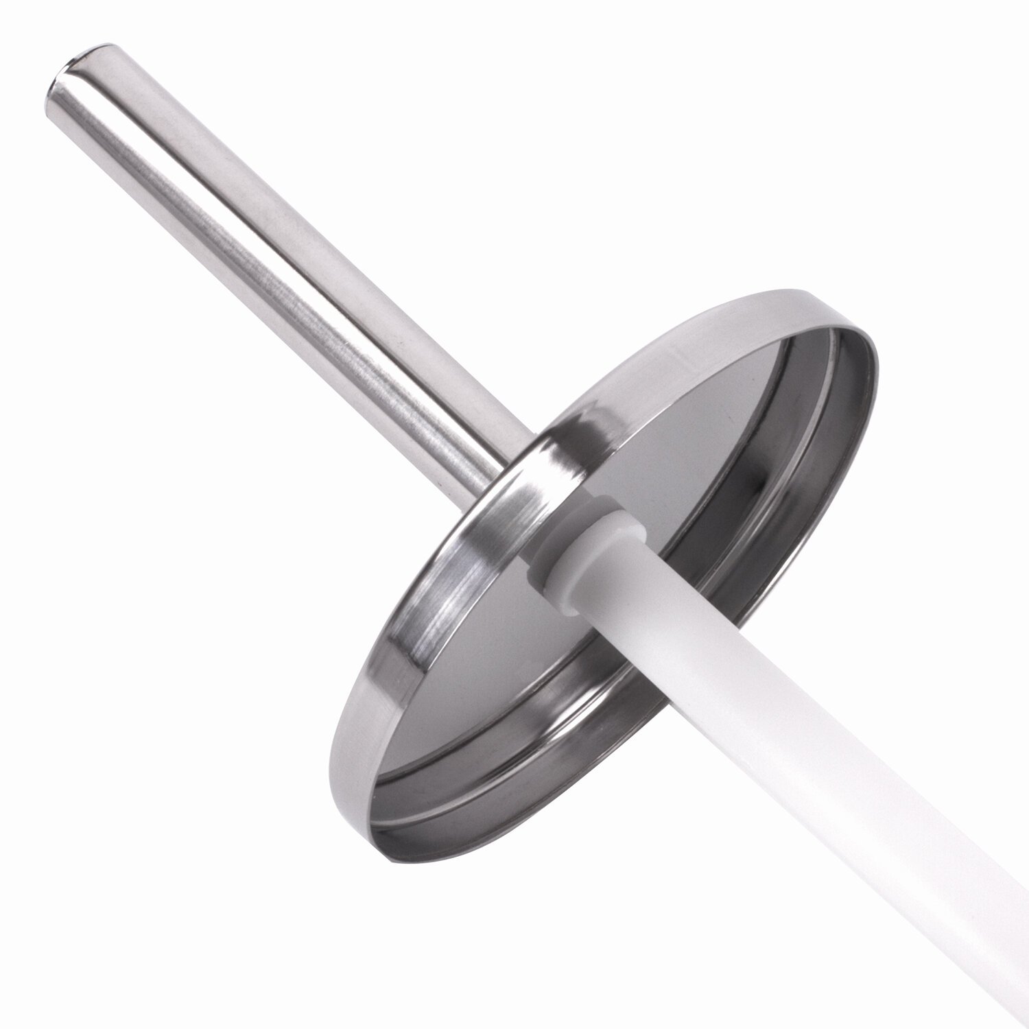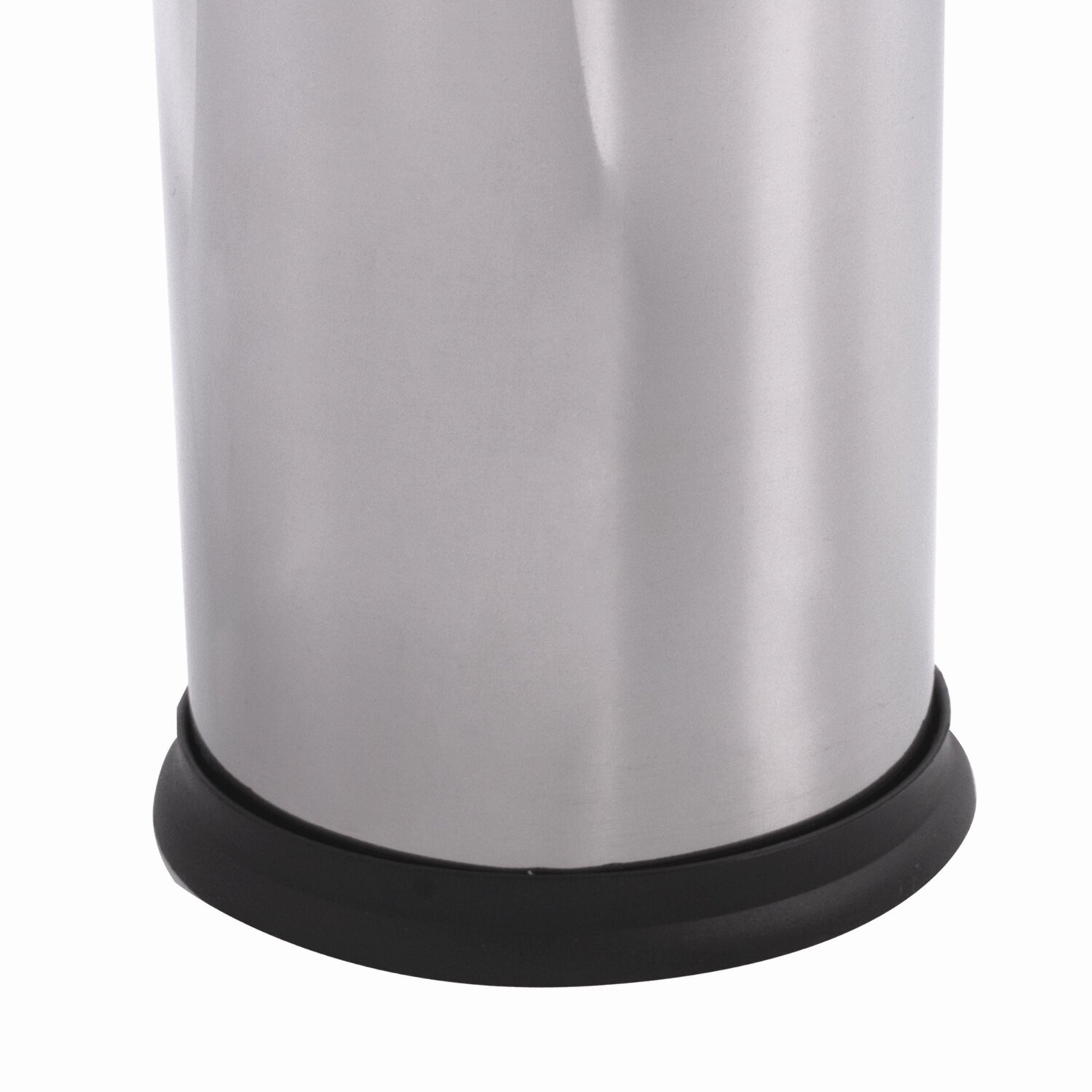 Изготовлен из зеркальной нержавеющей стали. Диаметр подставки - 9,5 см. Диаметр щетки - 7,5 см. Высота - 34 см.