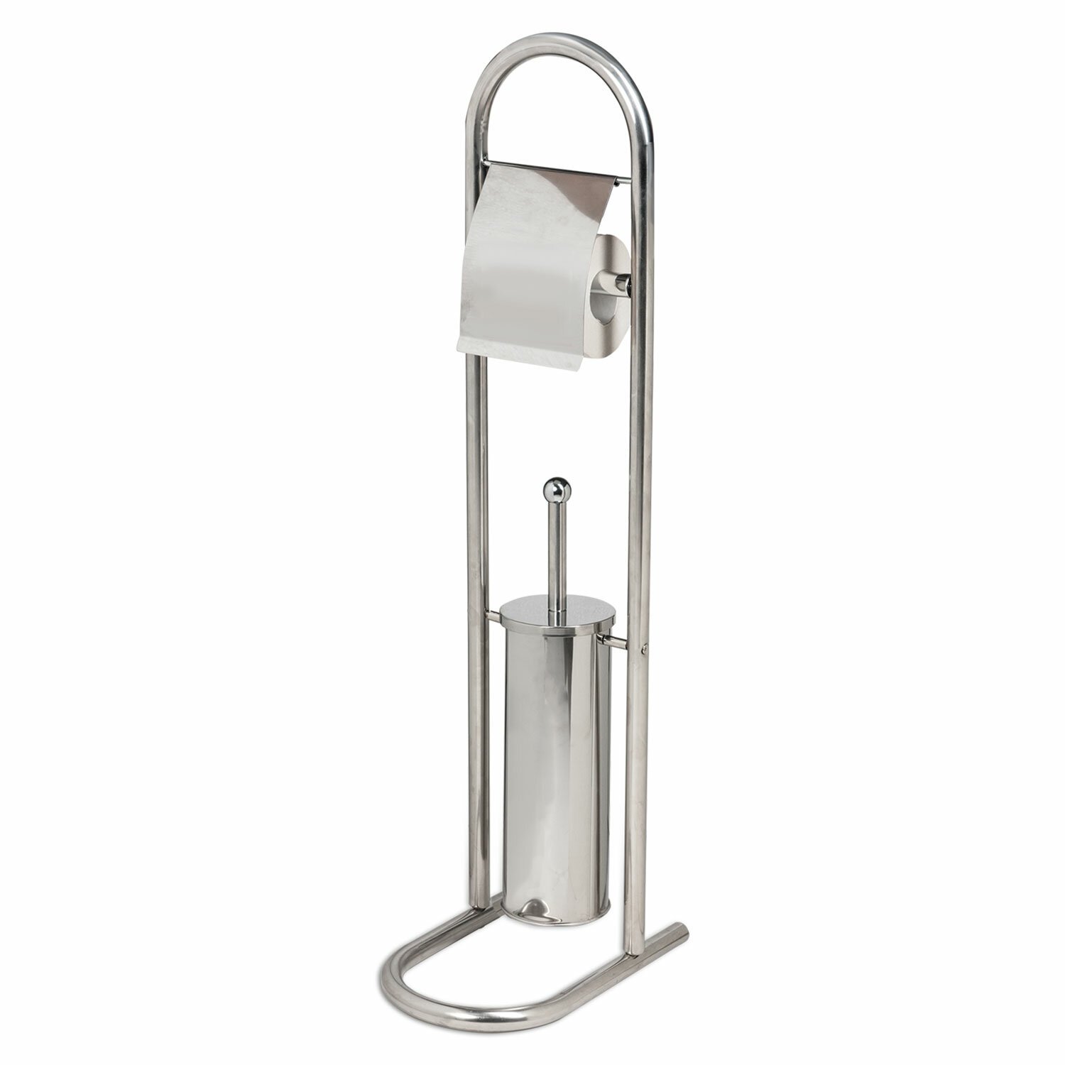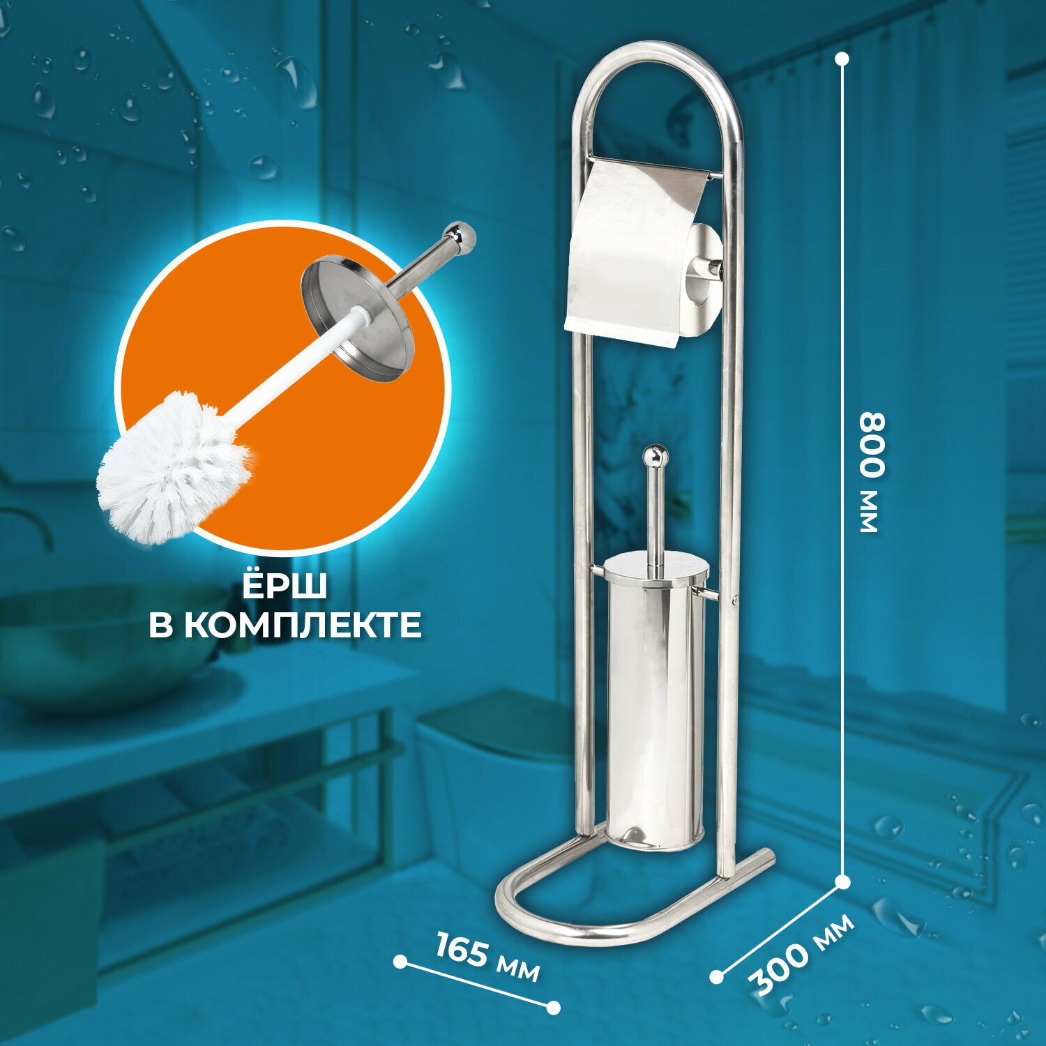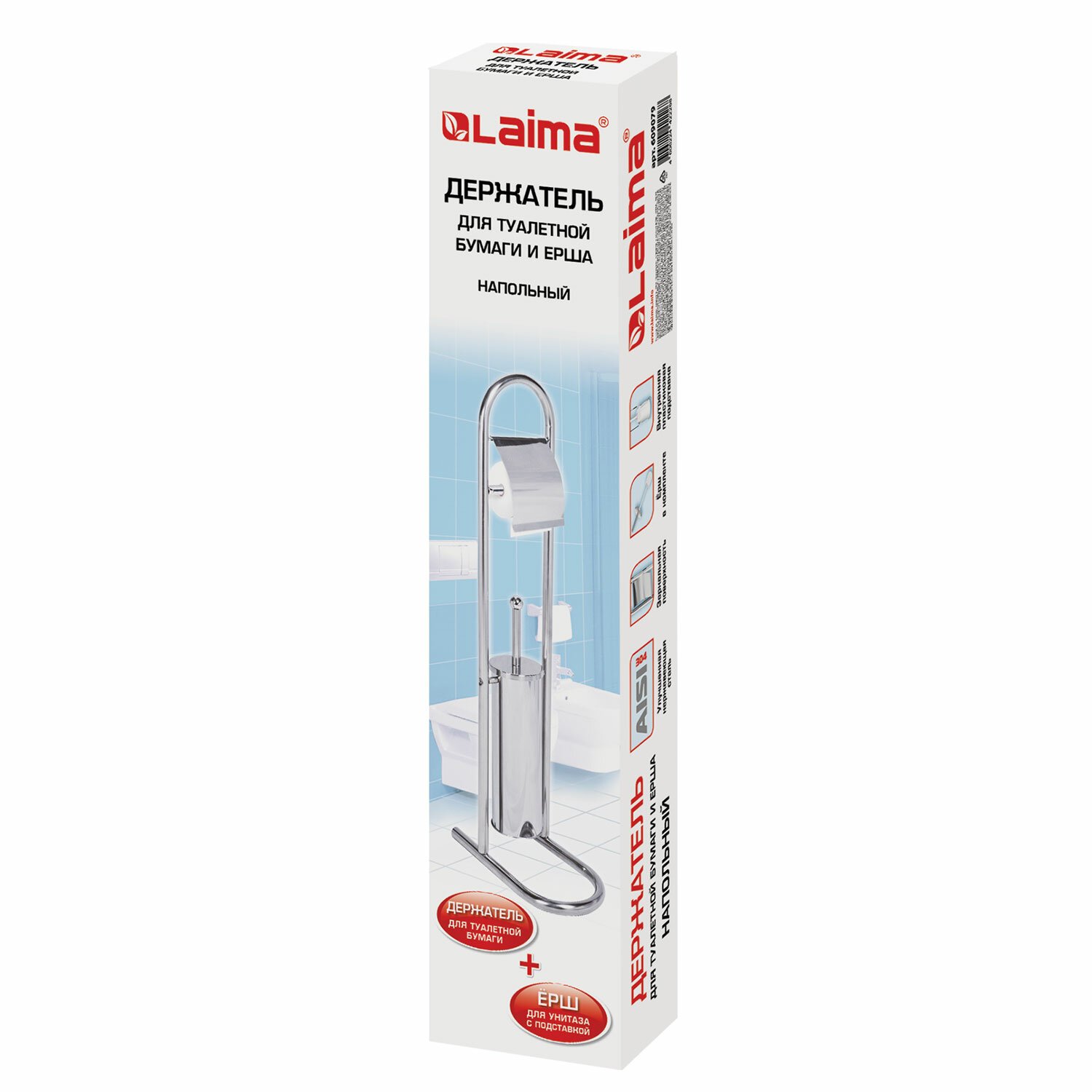 Стойка напольная ерш с подставкой + держатель туалетной бумаги, сталь/пластик, зеркальный, LAIMA, 607433