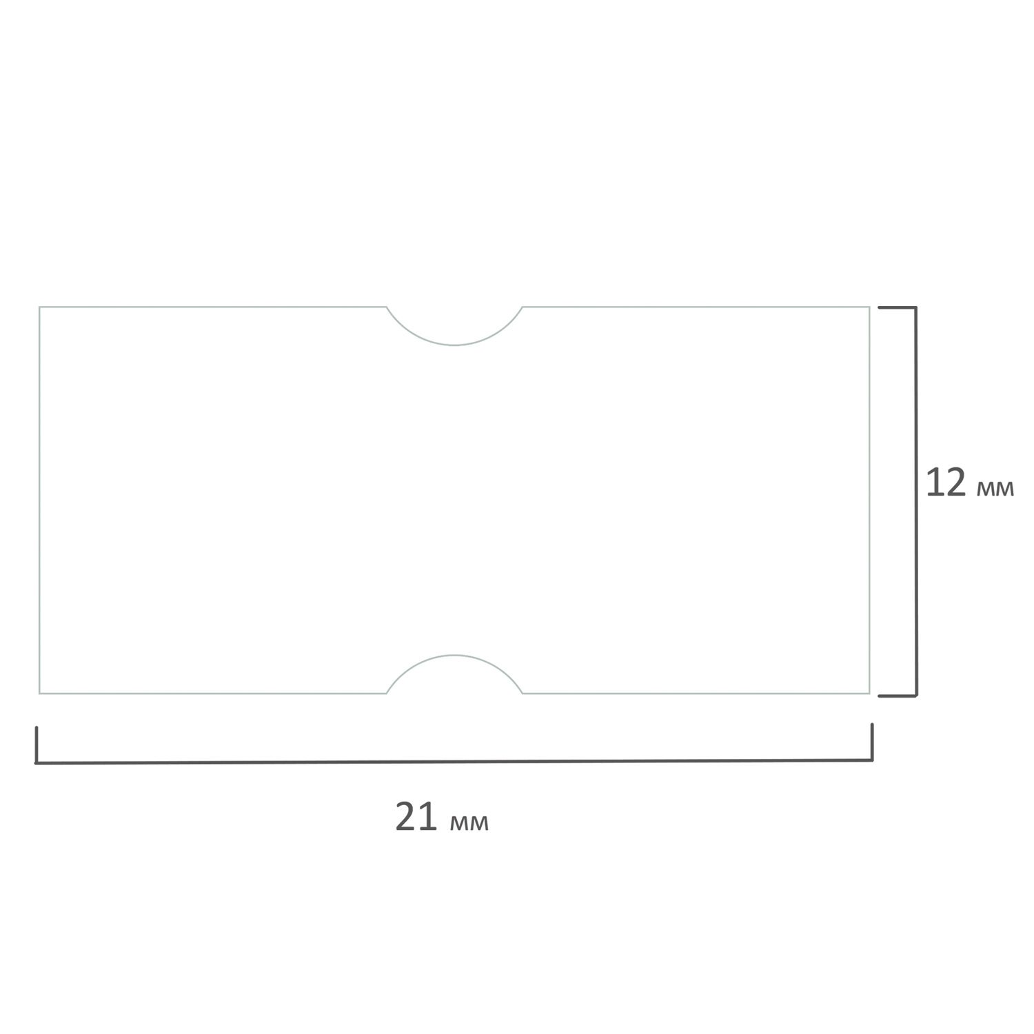 Цвет белый, форма — прямоугольная. Один рулон содержит 600 этикеток размером 21x12 мм. 5 рулонов в комплекте. Поставляются в термоусадочной пленке.