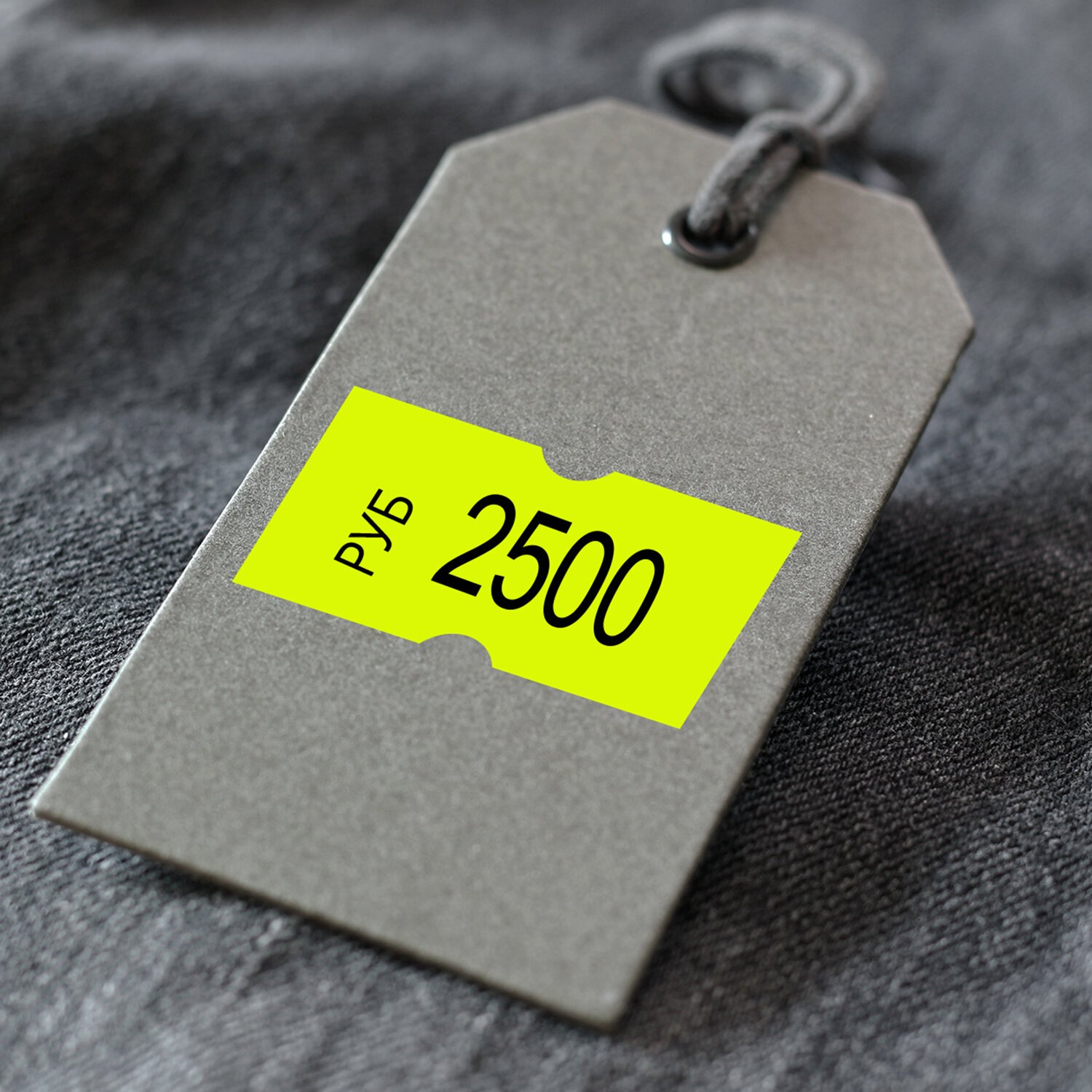Цвет - желтый, форма - прямоугольная. Один рулон содержит 600 этикеток размером 21x12 мм. 5 рулонов в комплекте. Поставляются в термоусадочной пленке.