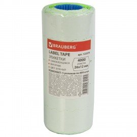 Этикет-лента 26х12 мм, волна, белая, комплект 5 рулонов по 800 шт., BRAUBERG, 123576